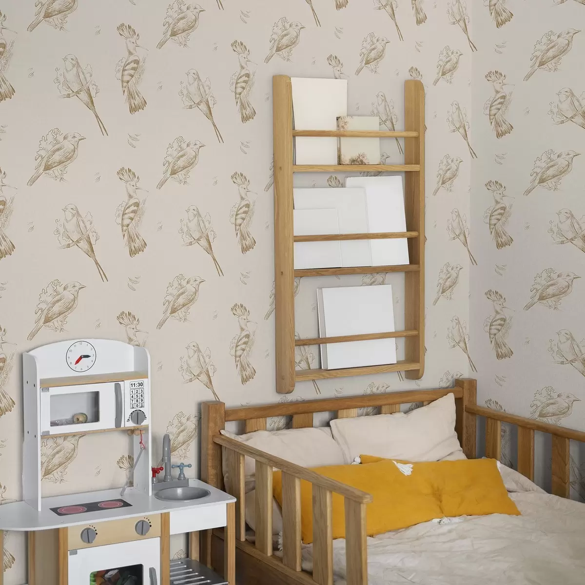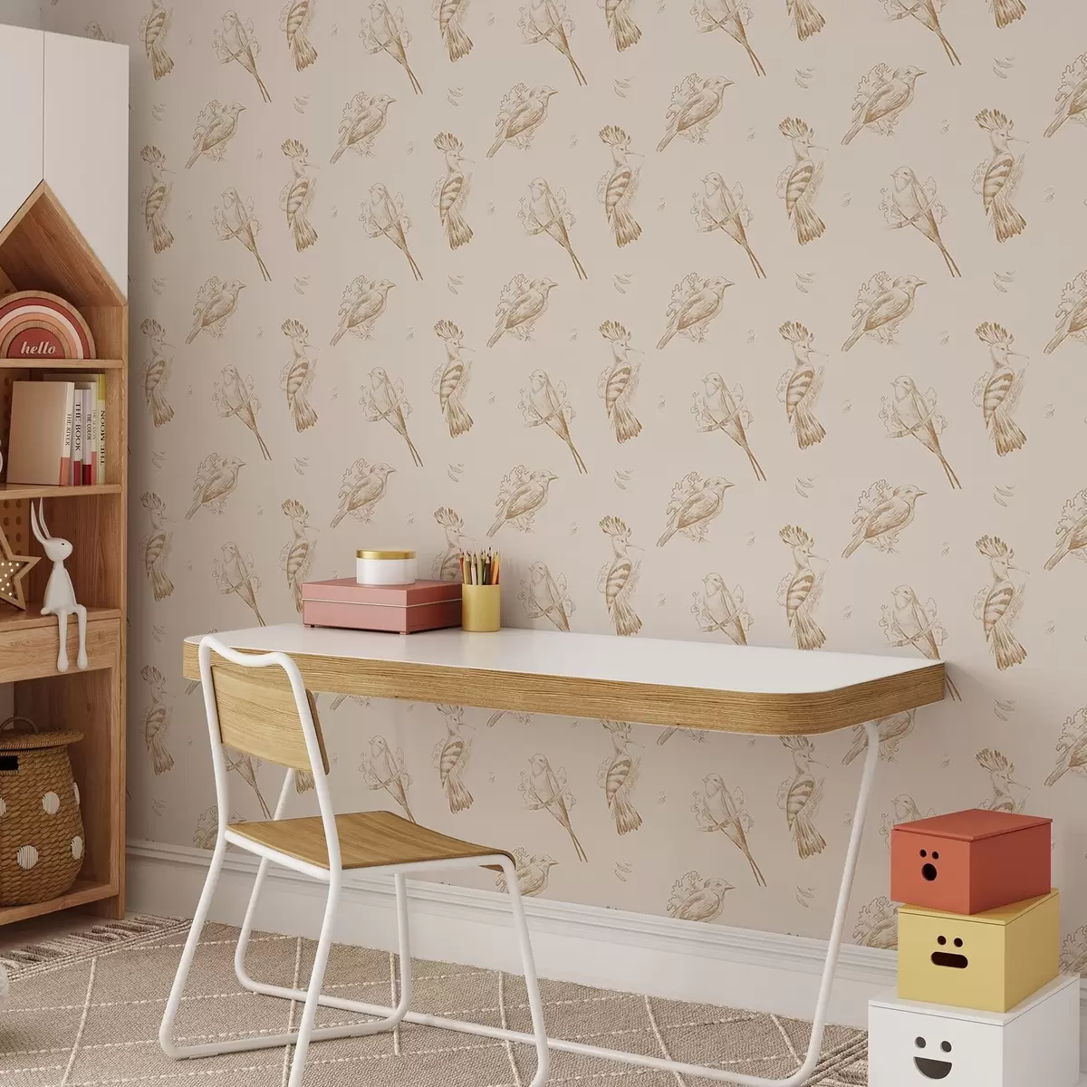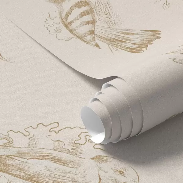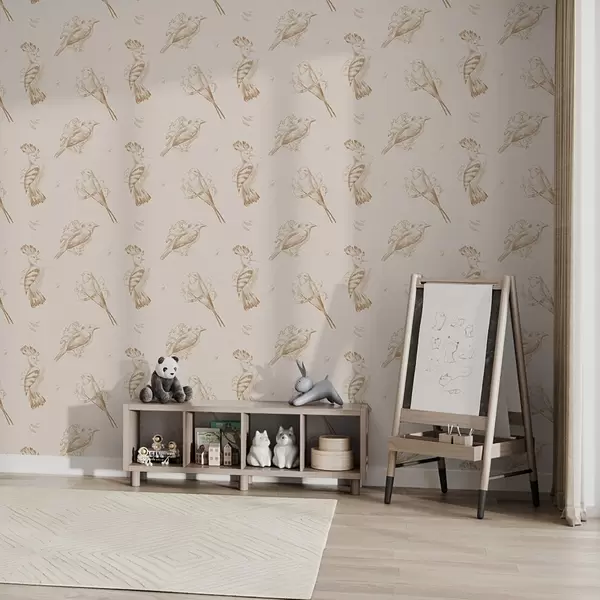 Papel tapiz Toile de pájaros: bocetos de pájaros sobre un cálido fondo beige Nr. a00656v3