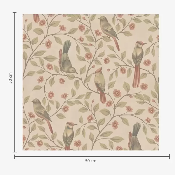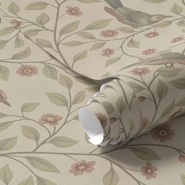 Papel tapiz Pájaros en ramas florecidas, fondo beige cálido Nr. a00670