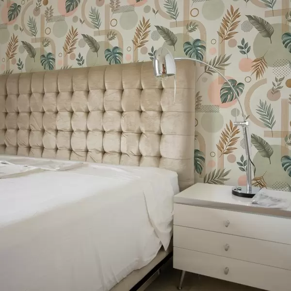 Papel tapiz Hojas y formas geométricas en tonos cálidos y tranquilos Nr. a00677