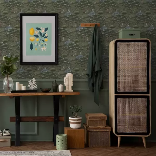 Papel pintado Claro del bosque con cervatillos, conejos y garzas a00680