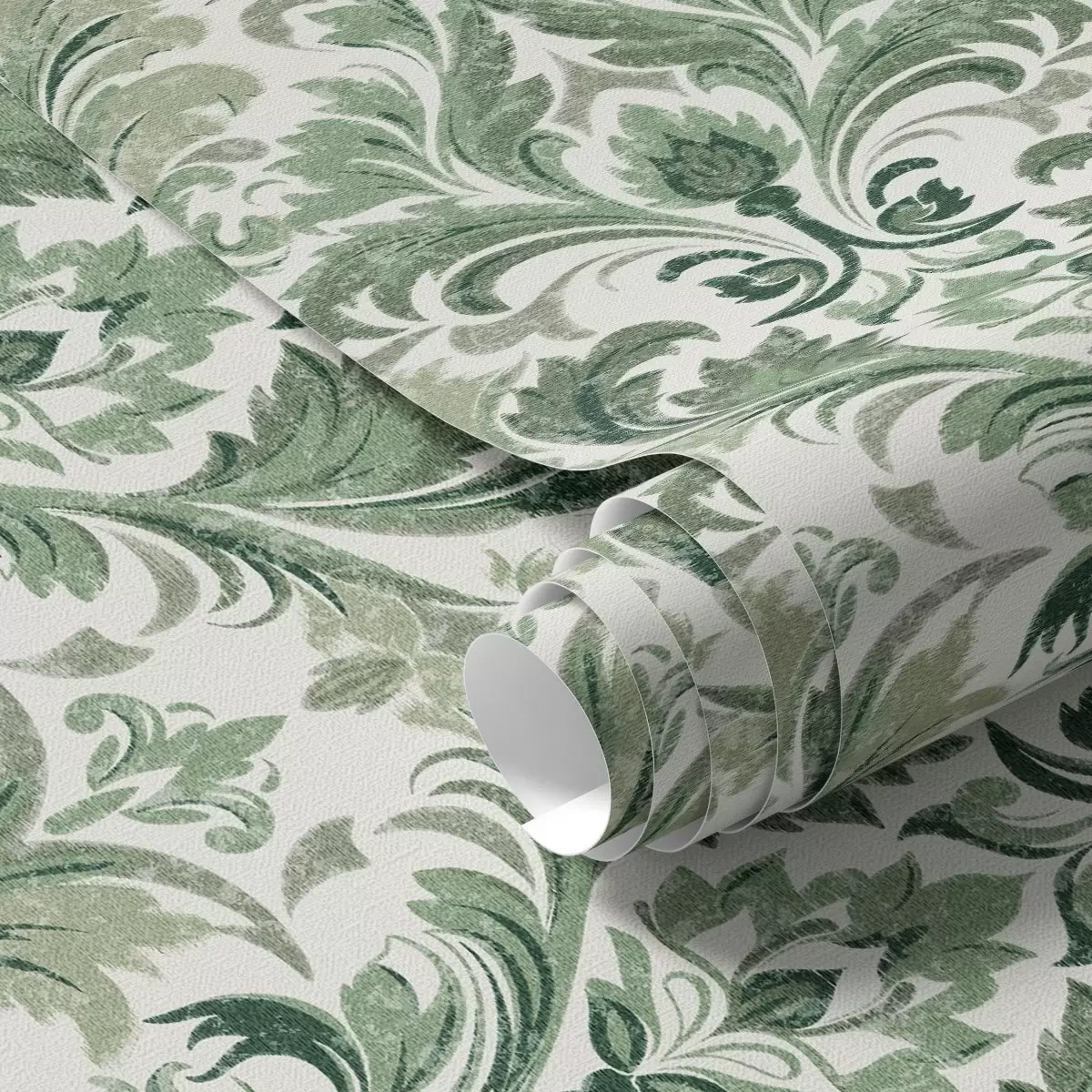 Papel tapiz Damasco verde con textura en relieve sobre fondo claro Nr. a00692