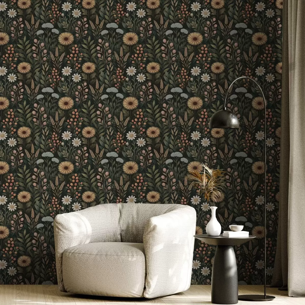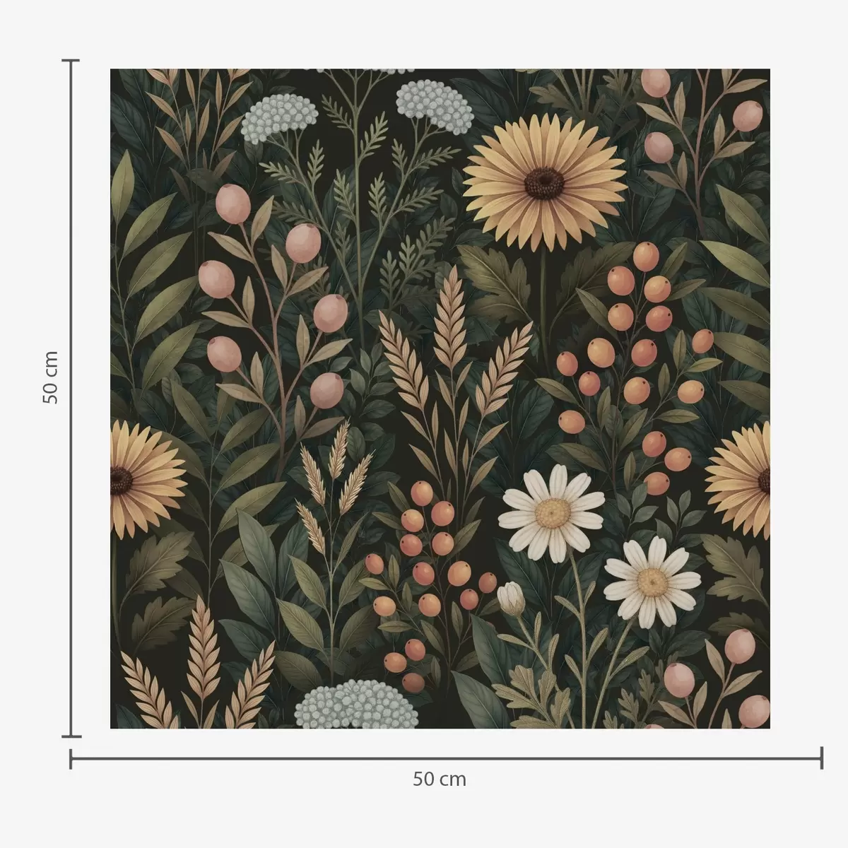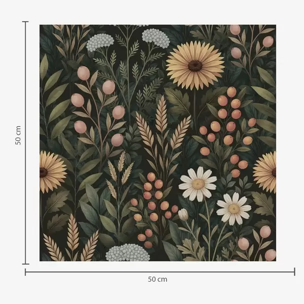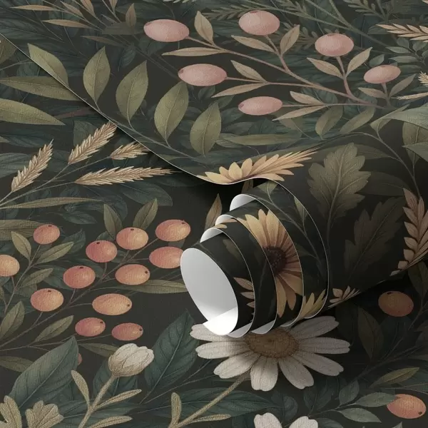 Papel tapiz Flores silvestres y bayas sobre fondo oscuro, adorno natural Nr. a00707
