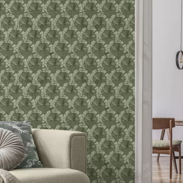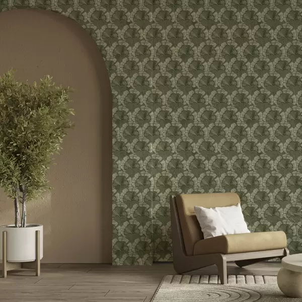 Papel tapiz Diseño gráfico con ginkgo en una paleta de colores verdes fríos Nr. a00709