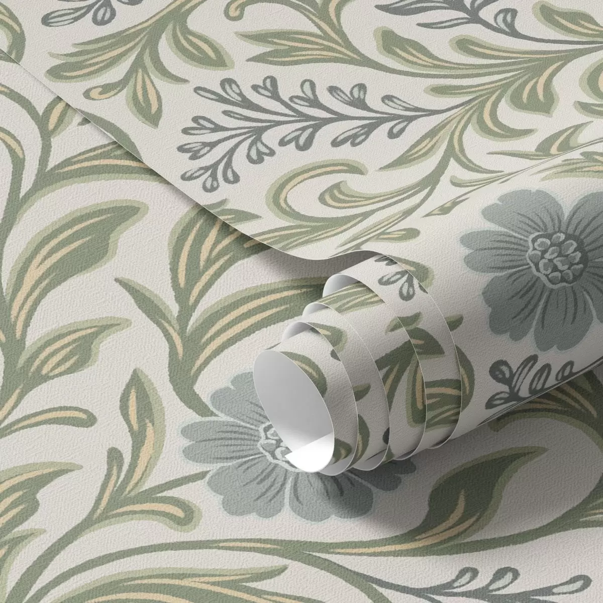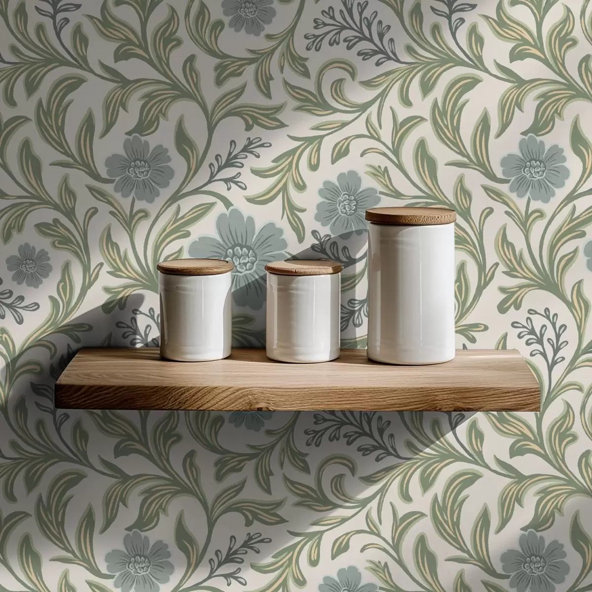 Papel tapiz Adorno floral gris salvia sobre fondo claro Nr. a00712