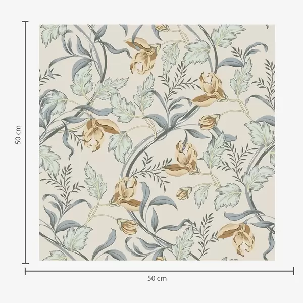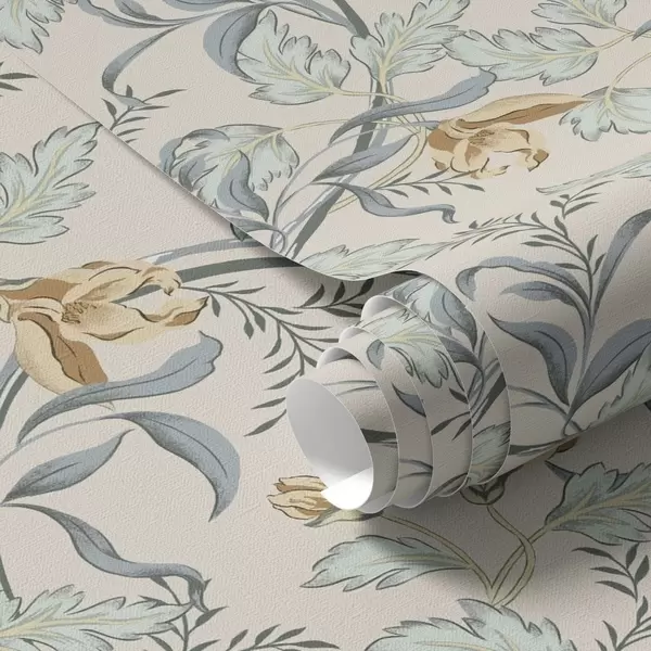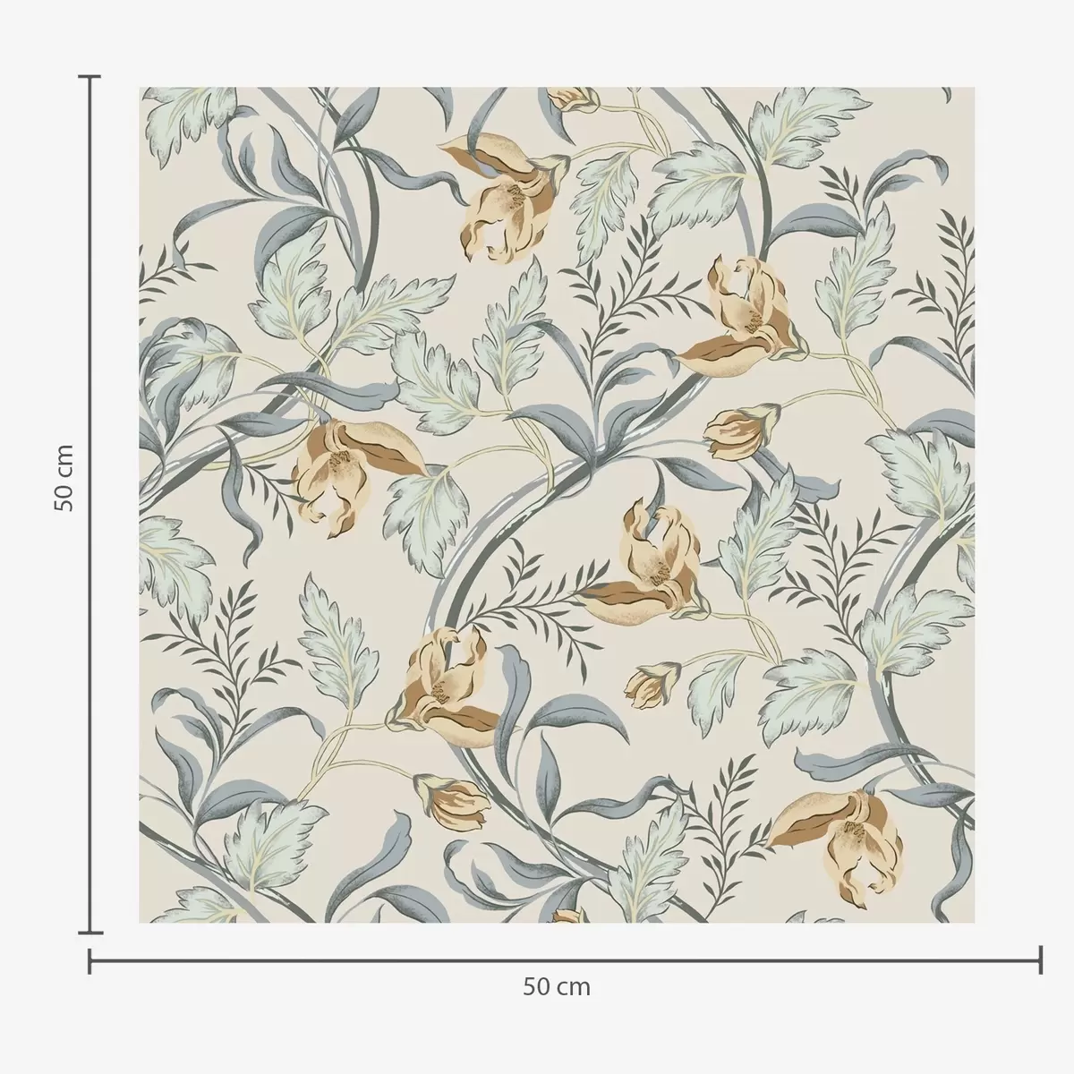 Papel tapiz Flores vintage con follaje azul sobre fondo crema Nr. a00717