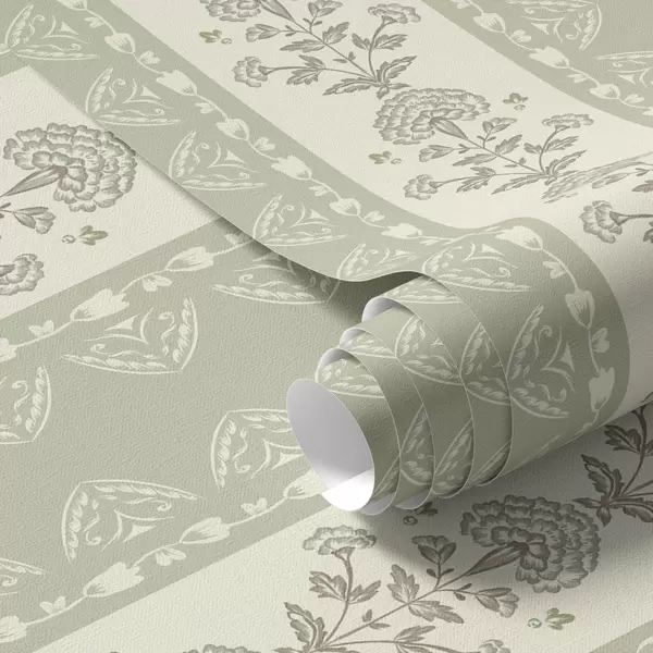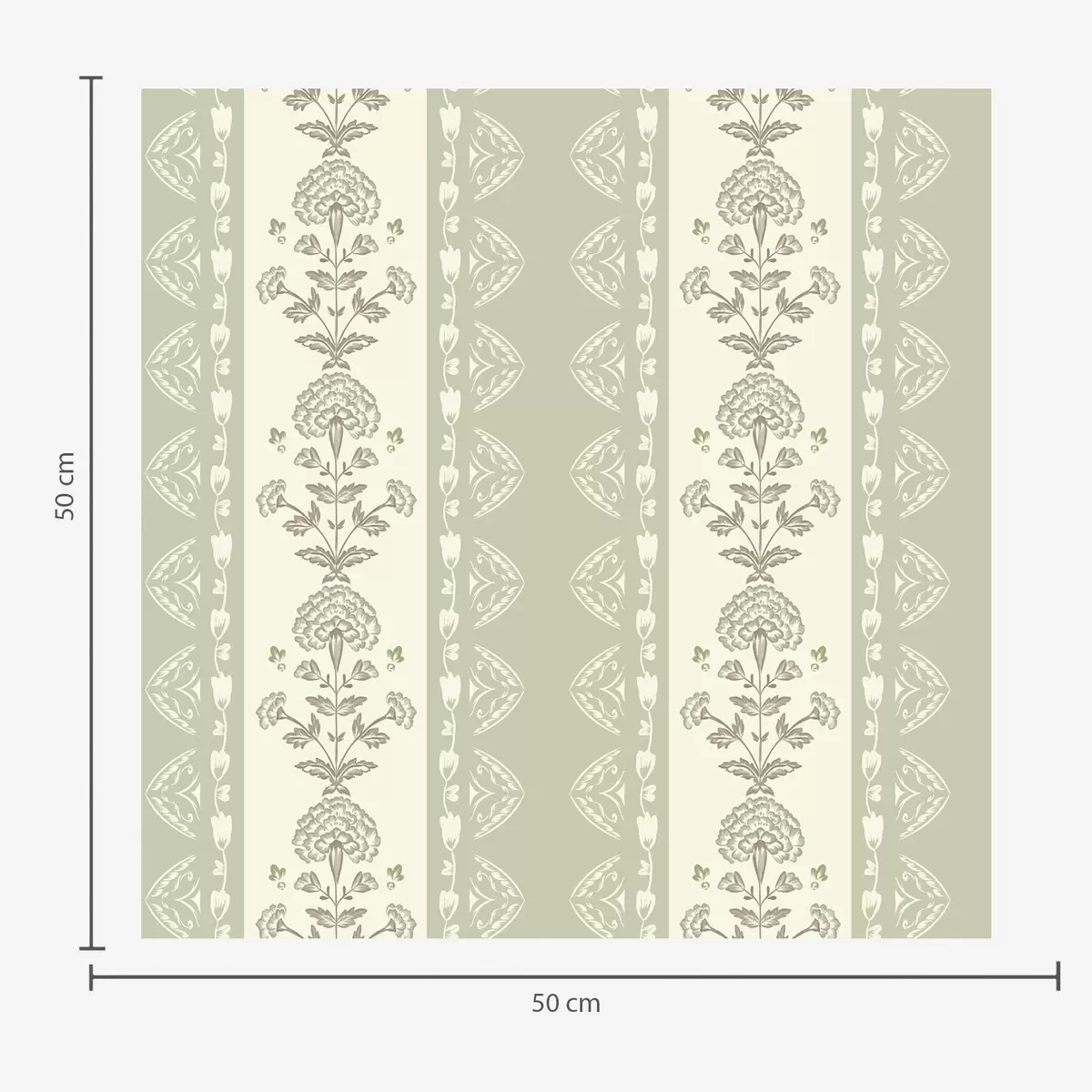 Papel tapiz Adorno rayado con columnas florales en tonos salvia Nr. a00719