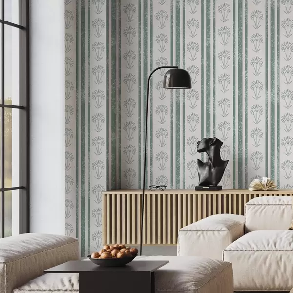 Papel tapiz Patrón de cinta con flores en tonos verdes Nr. a00732