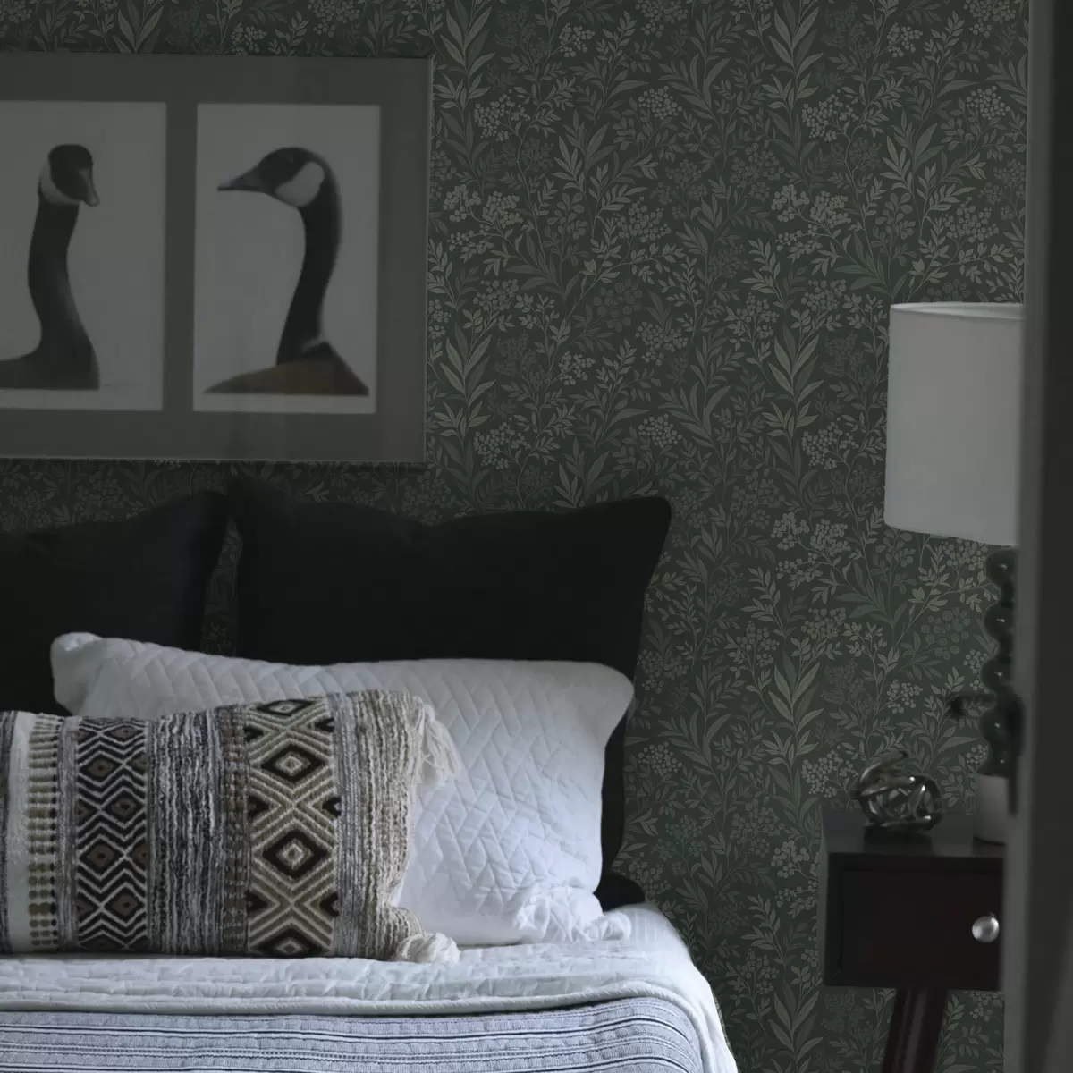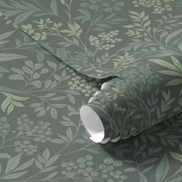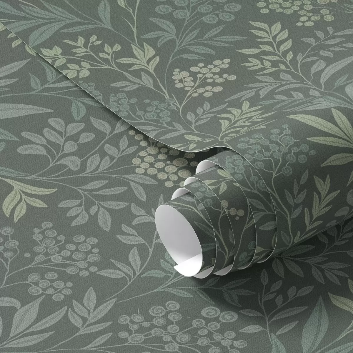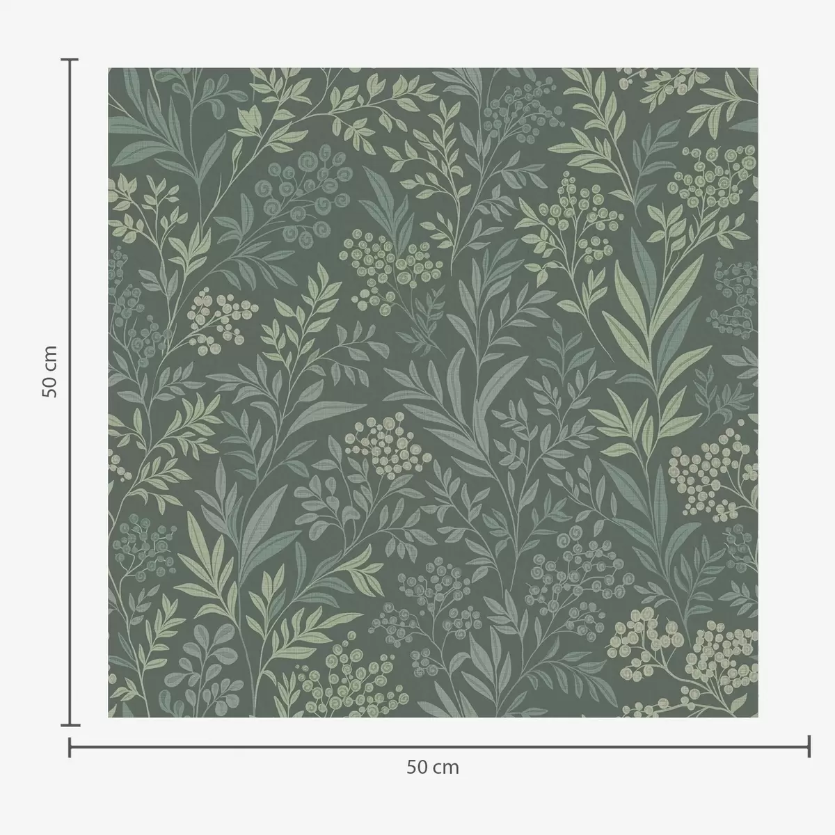 Papel tapiz Hierbas y bayas esmeralda, delicado diseño botánico Nr. a00740