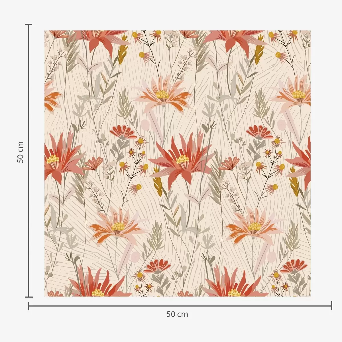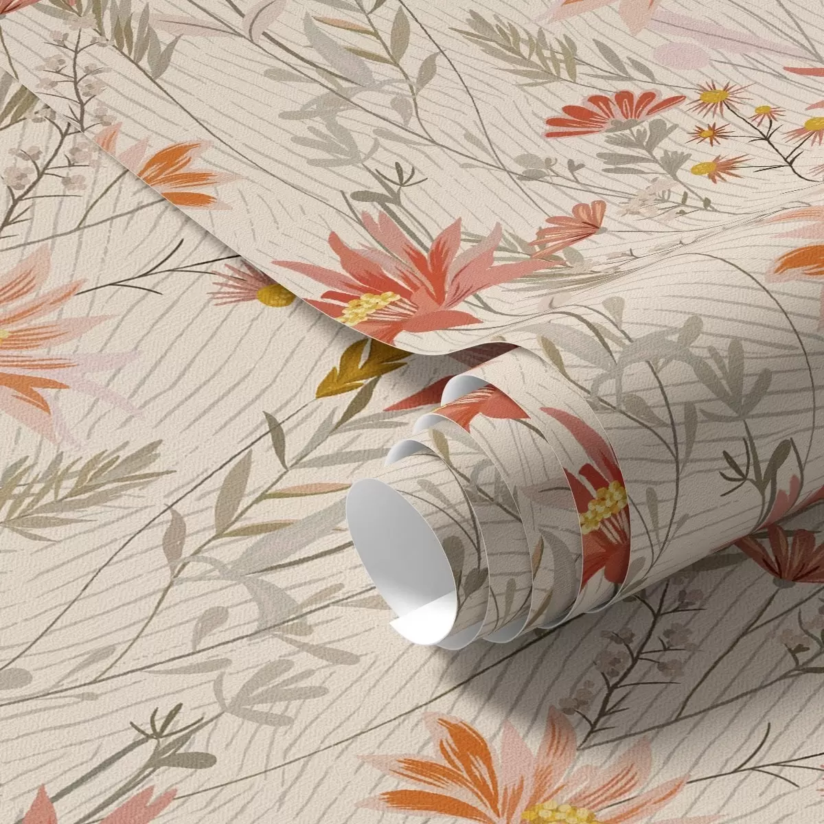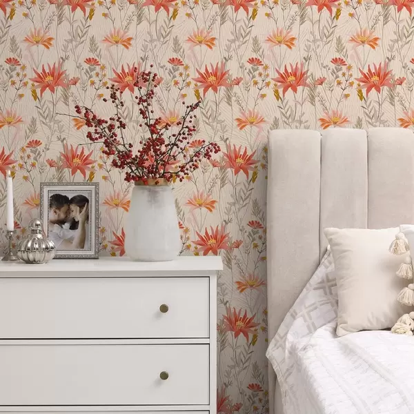 Papel tapiz Flores silvestres en tonos cálidos sobre fondo beige Nr. a00751