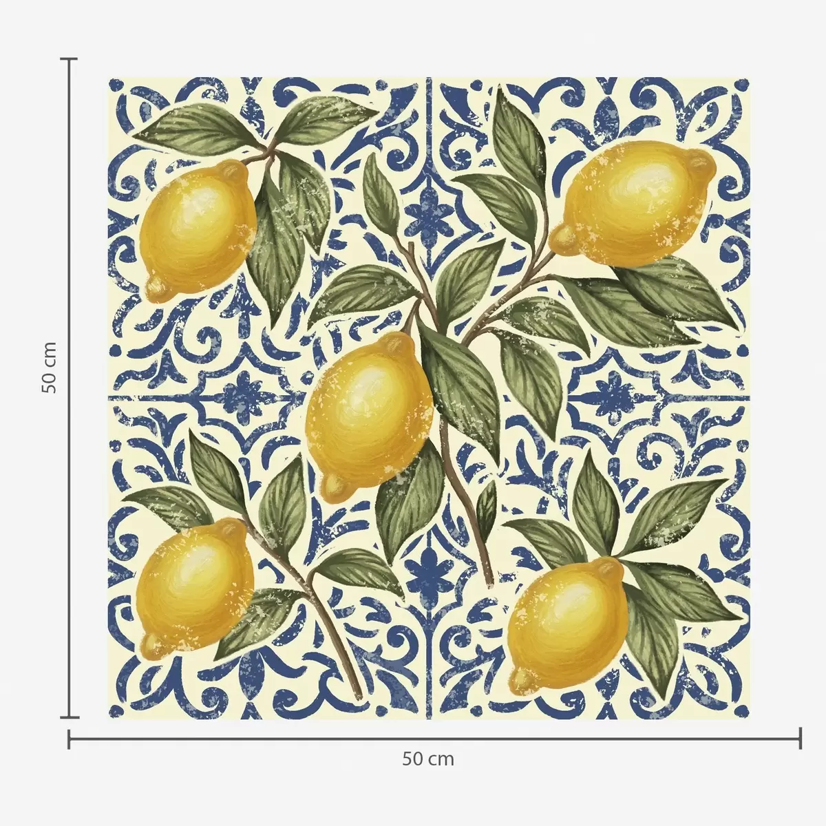 Papel tapiz Ramas de limón con fondo ornamental azul Nr. a00763