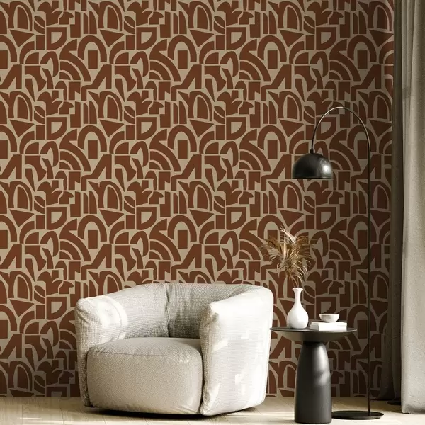 Papel tapiz Formas geométricas de terracota sobre lino Nr. a00774