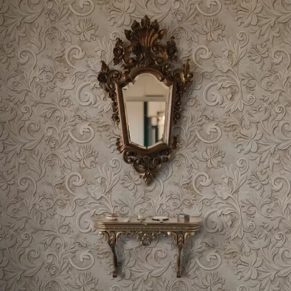 Papel tapiz Relieve en piedra con volutas florales, beige vintage Nr. a00784