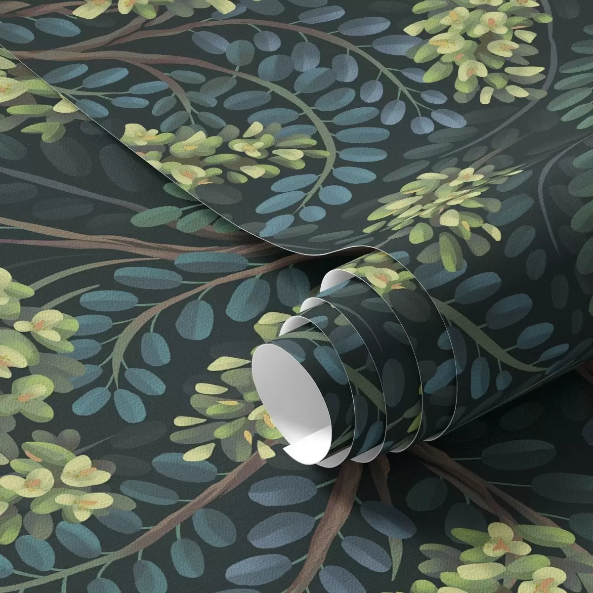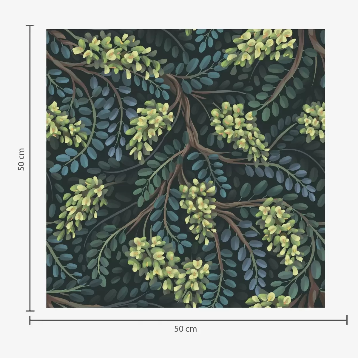 Papel tapiz Ramas con inflorescencias verdosas sobre fondo oscuro Nr. a00786