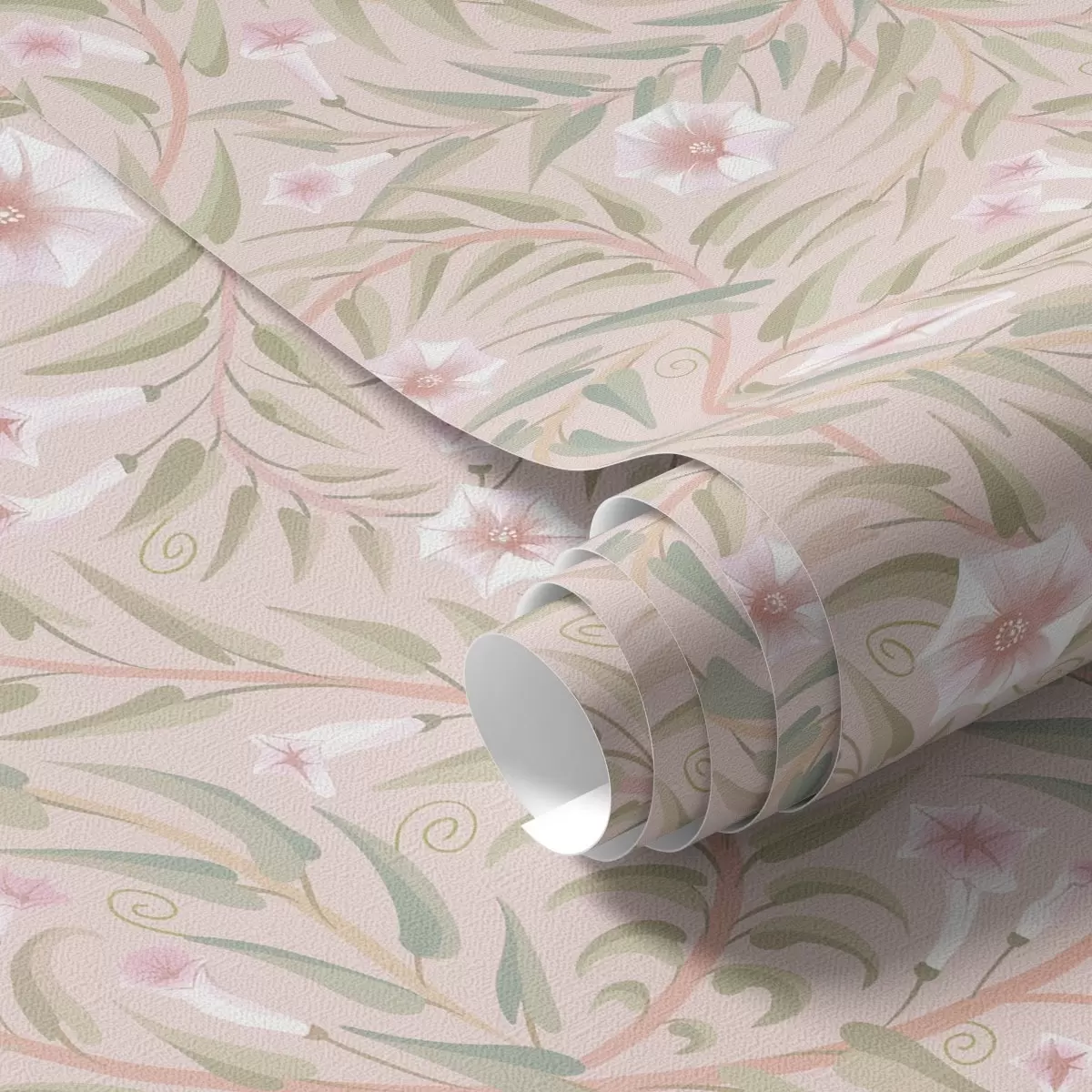 Papel tapiz Delicadas flores rosadas y hojas suaves sobre un fondo pastel Nr. a00788