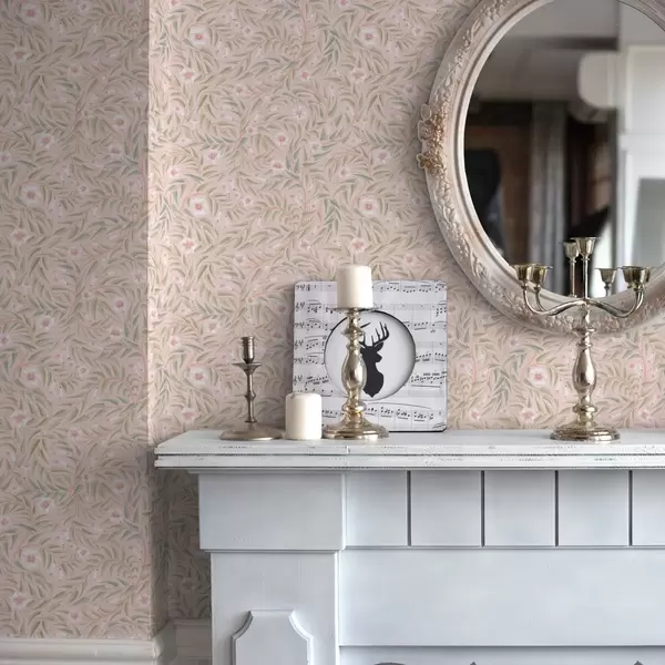 Papel tapiz Delicadas flores rosadas y hojas suaves sobre un fondo pastel Nr. a00788