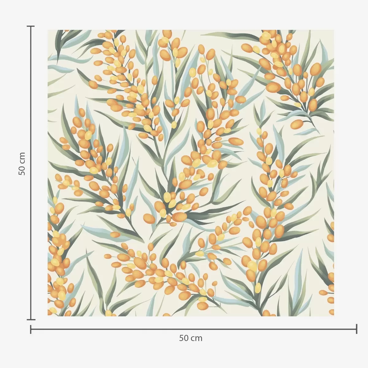Papel tapiz Ramas de espino amarillo con bayas naranjas, fondo claro Nr. a00792