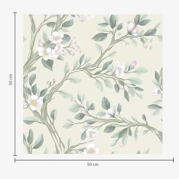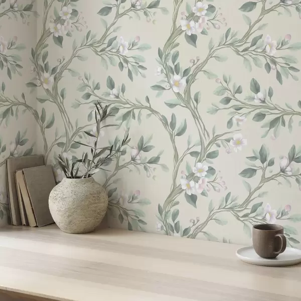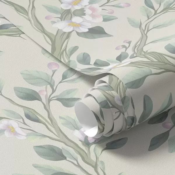 Papel tapiz Delicadas ramas en flor sobre fondo crema, colores pastel Nr. a00793