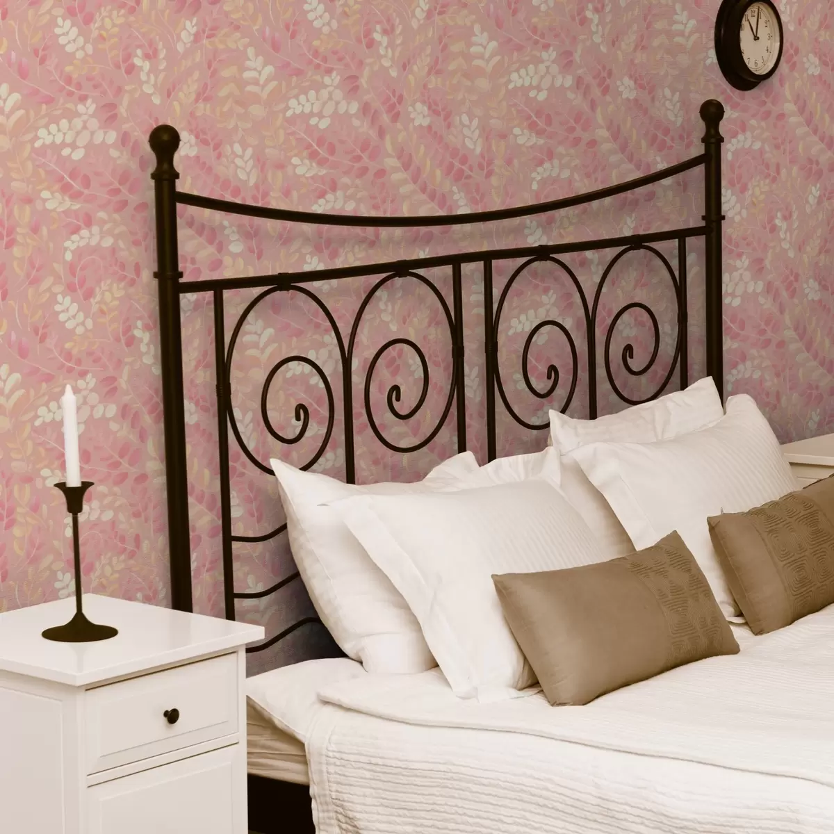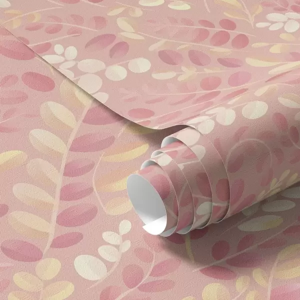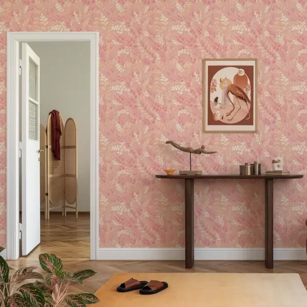 Papel tapiz Delicado follaje rosa-melocotón con un suave brillo de color Nr. a00799