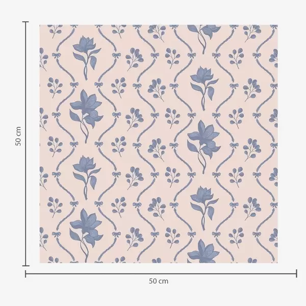 Papel tapiz Pequeñas flores y cintas en tonos gris azulado Nr. a00808v2