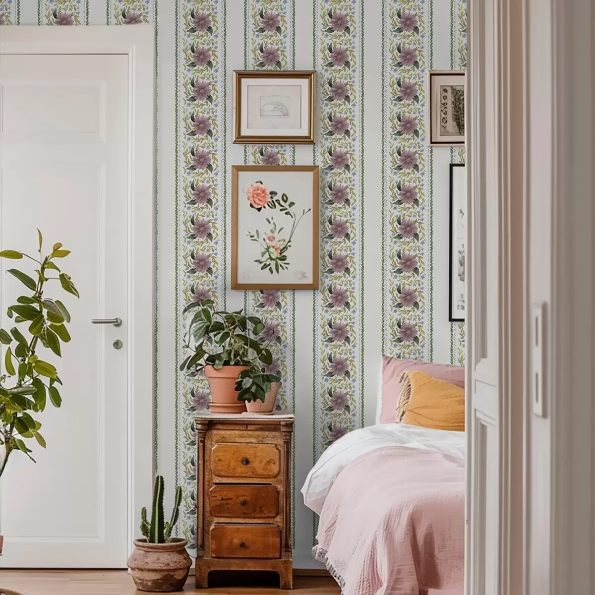 Papel tapiz Rayas florales verticales en tonos azul lila Nr. a00809