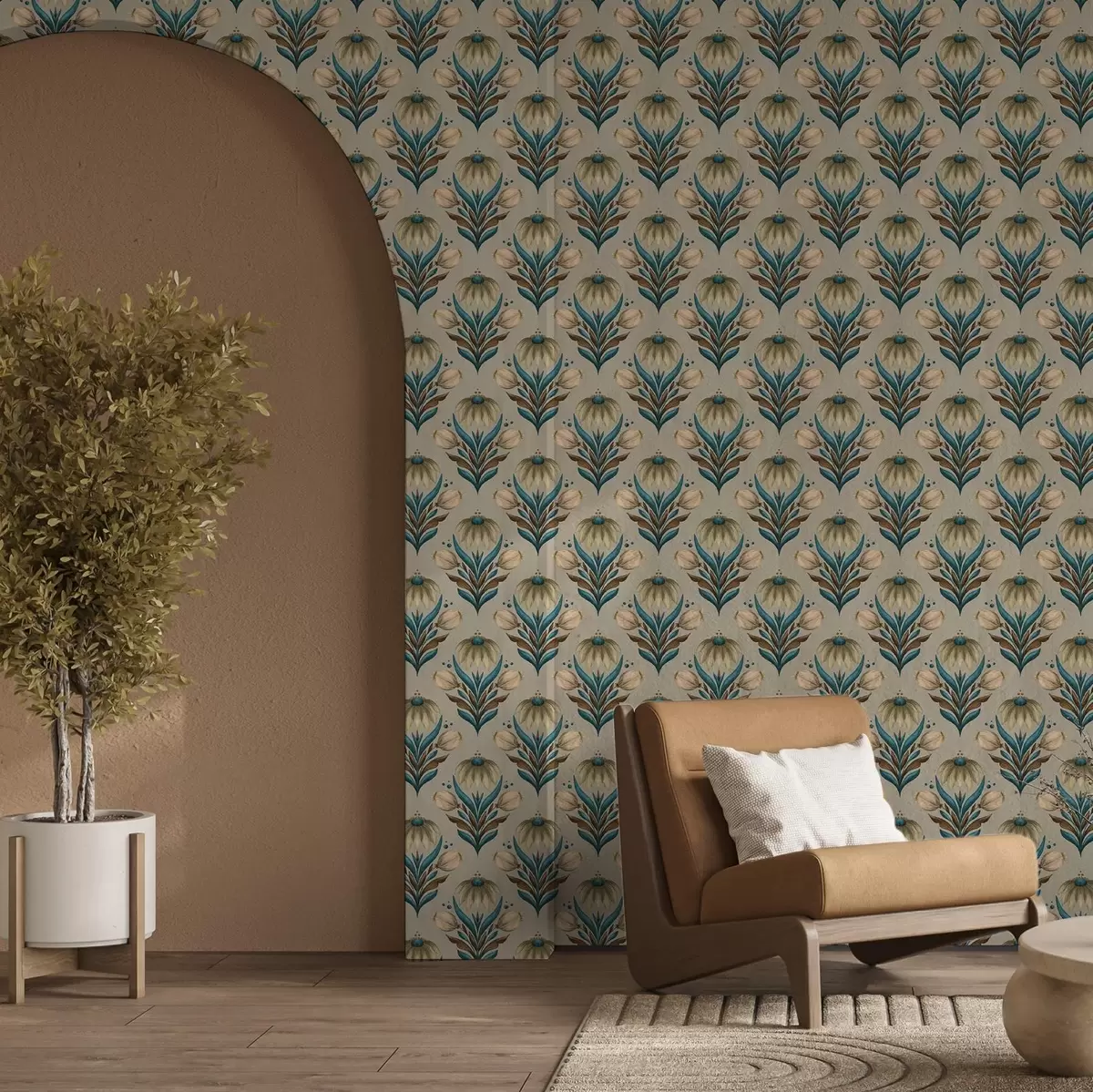 Papel tapiz Adorno floral simétrico en tonos cálidos Nr. a00812