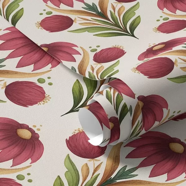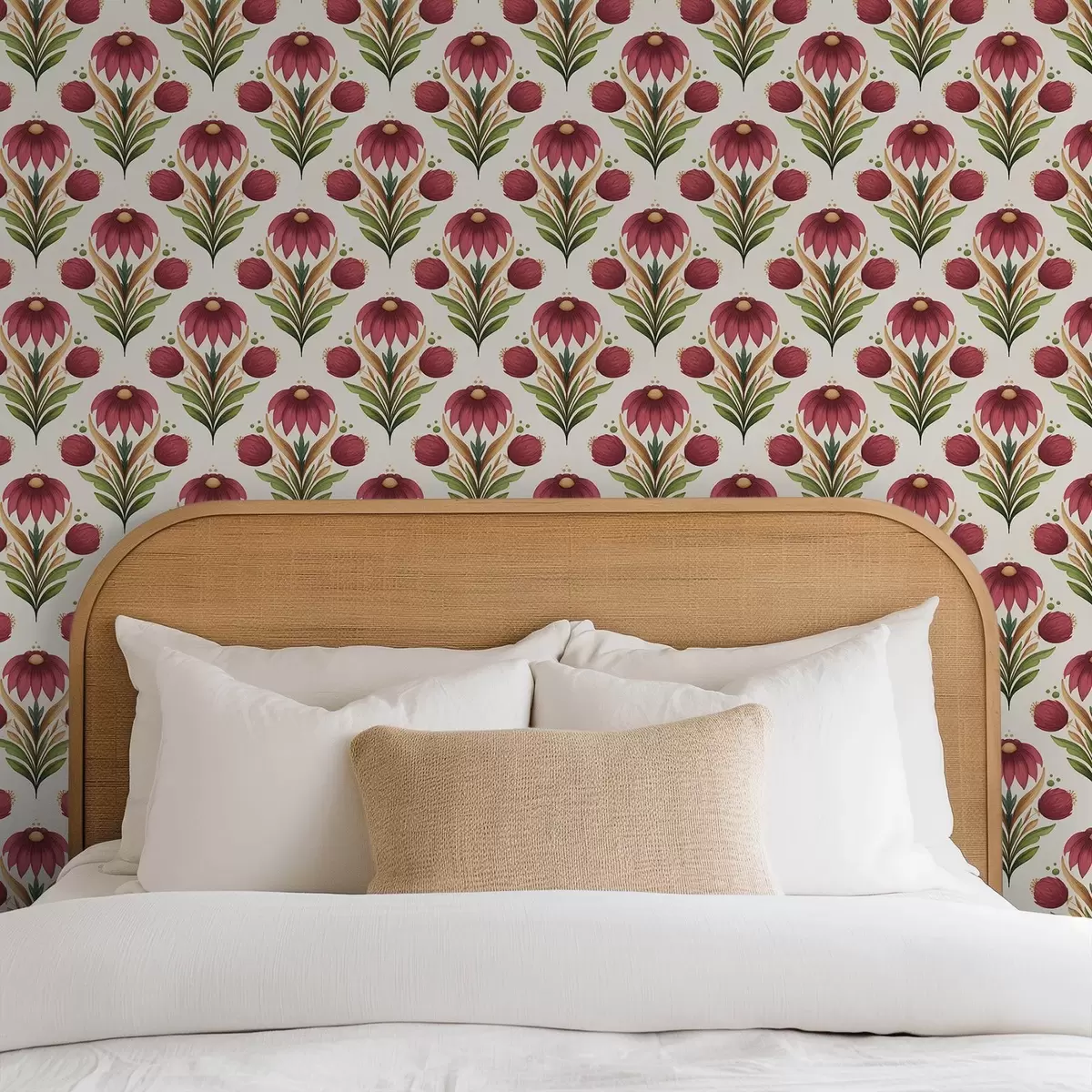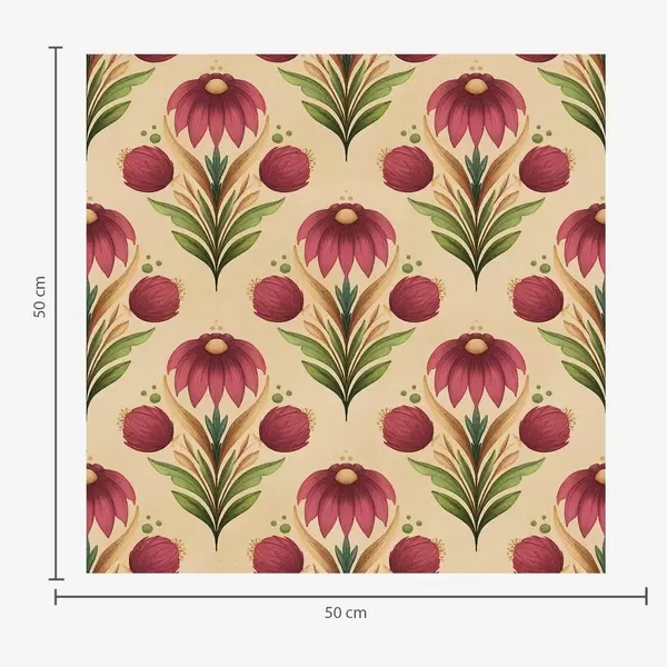 Papel tapiz Adorno floral simétrico en intensos tonos rojos y verdes Nr. a00812v4
