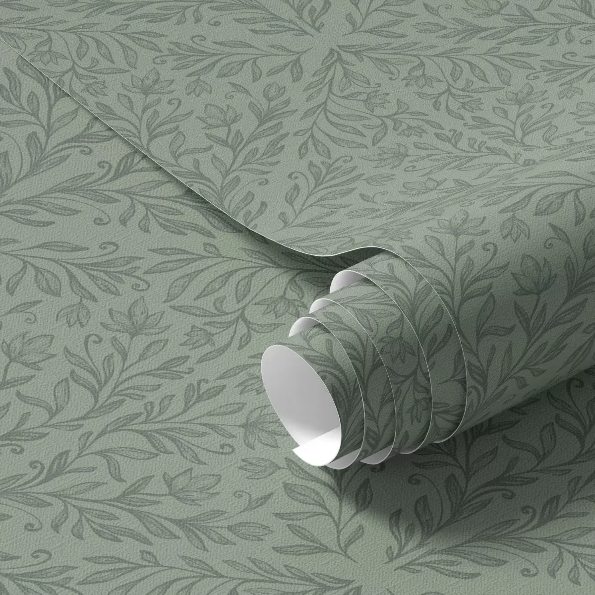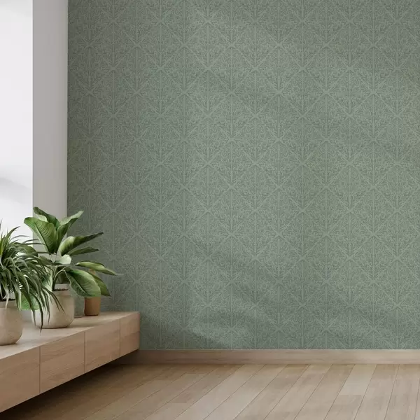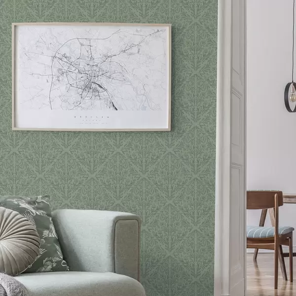 Papel tapiz Damasco botánico fino en verde apagado Nr. a00815v1