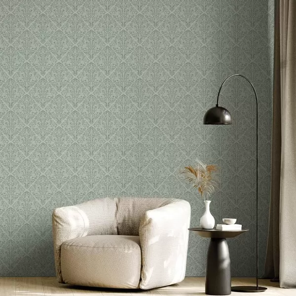 Papel tapiz Lacy dispara sobre un fondo verde pastel, con una suave profundidad. Nr. a00815v3