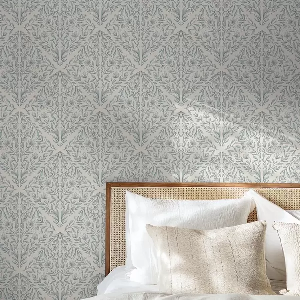 Papel tapiz Lacy dispara sobre fondo blanco crema con contorno turquesa Nr. a00815v4