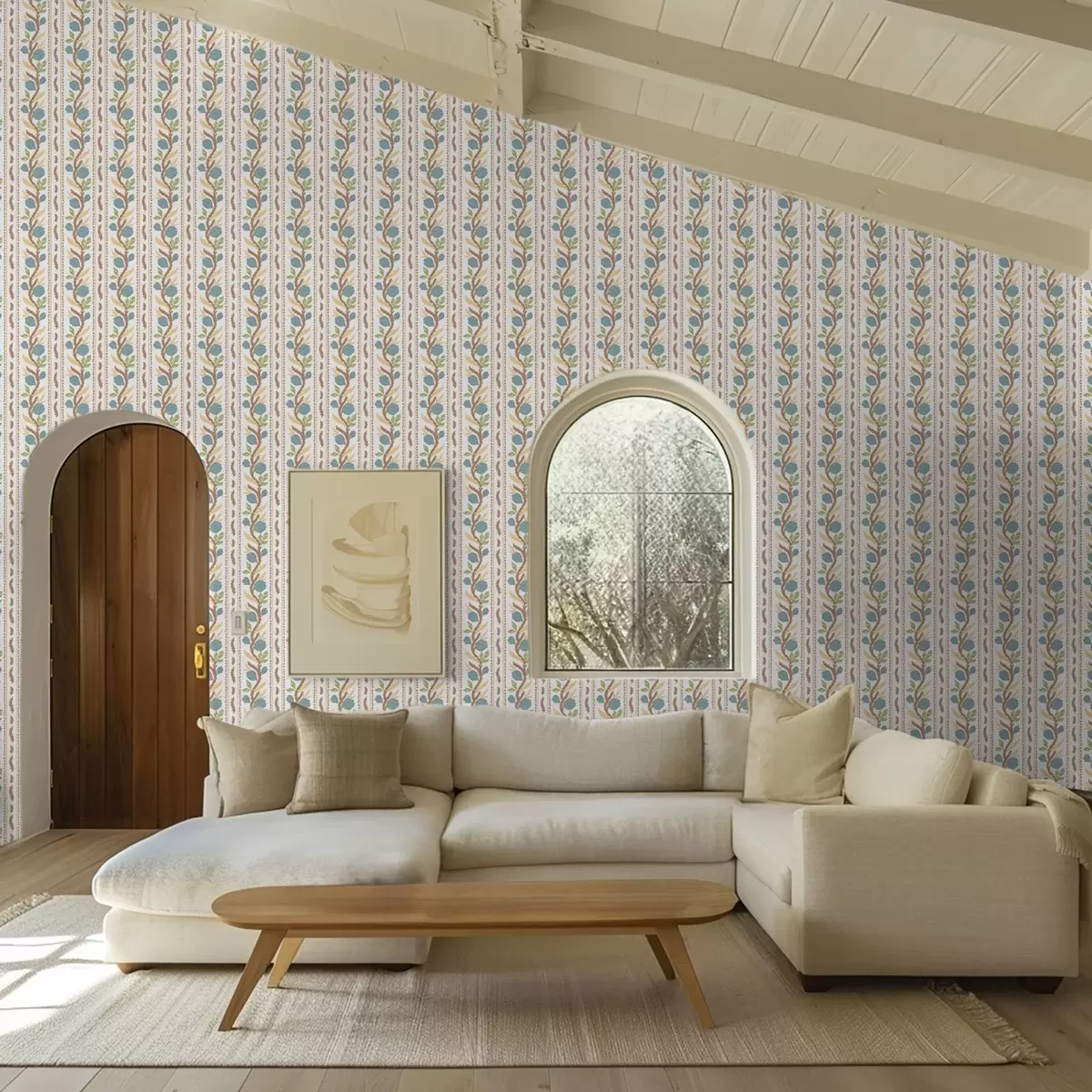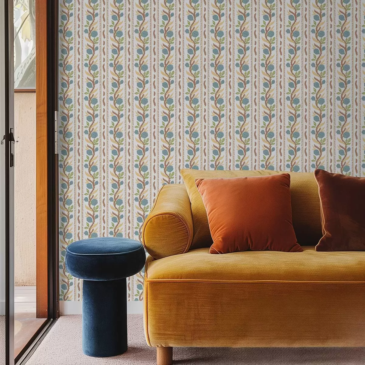 Papel tapiz Rayas verticales con flores azules Nr. a00816v2