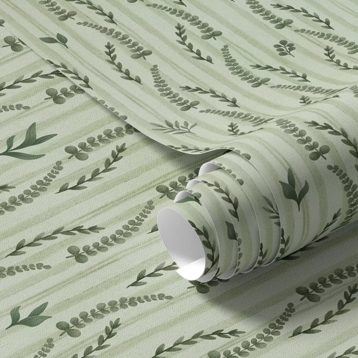 Papel tapiz Hierbas verdes densas y brotes de menta con rayas Nr. a00819