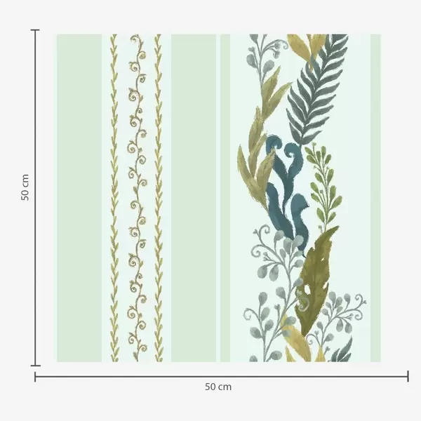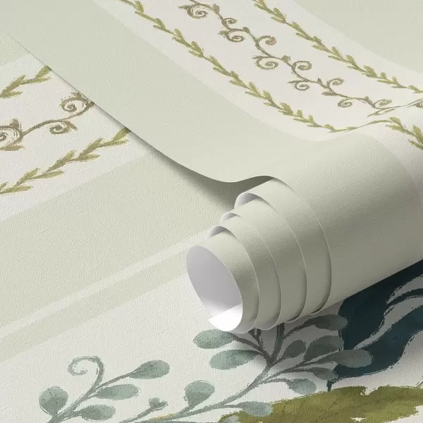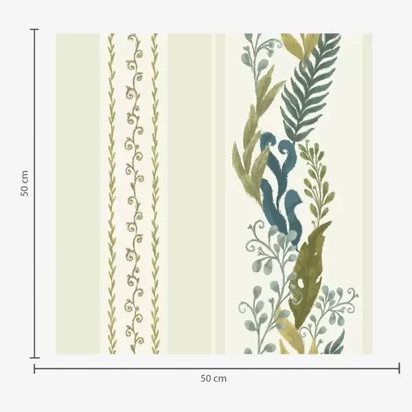 Papel tapiz Rayas anchas con ramas pictóricas en tonos azul oliva Nr. a00825