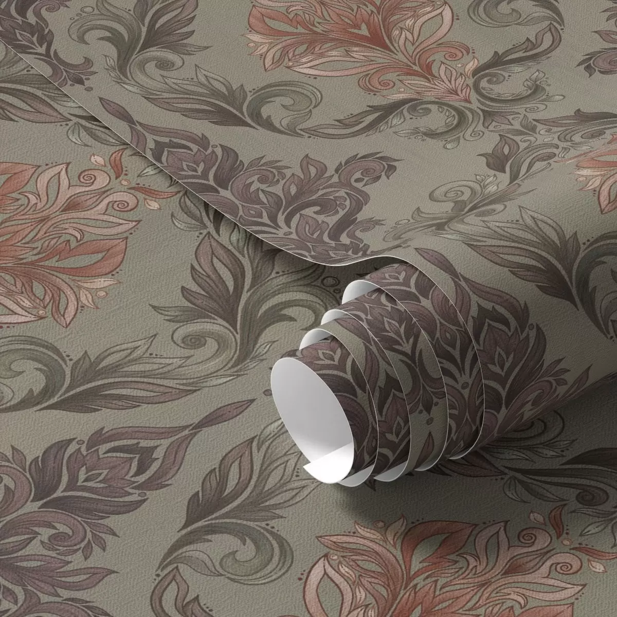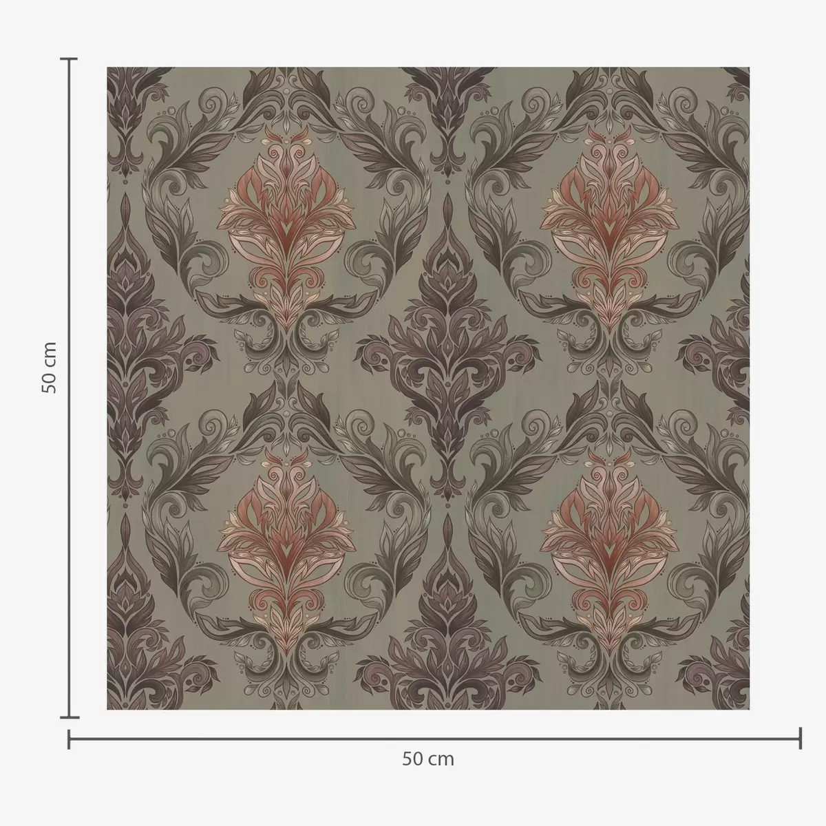 Papel tapiz Damasco terracota sobre fondo oliva apagado Nr. a00828v3