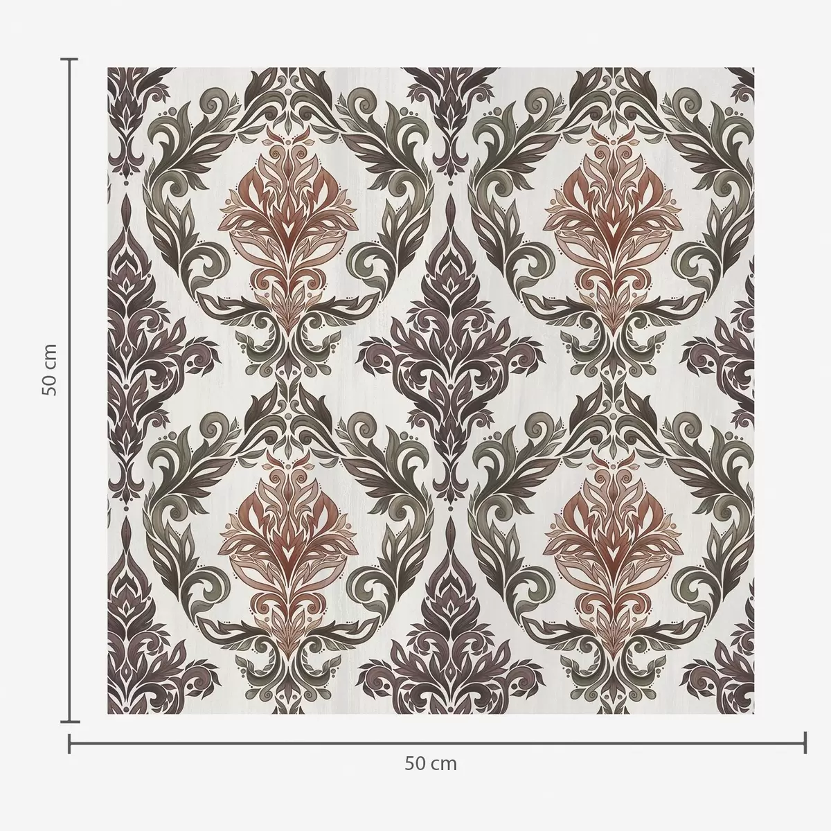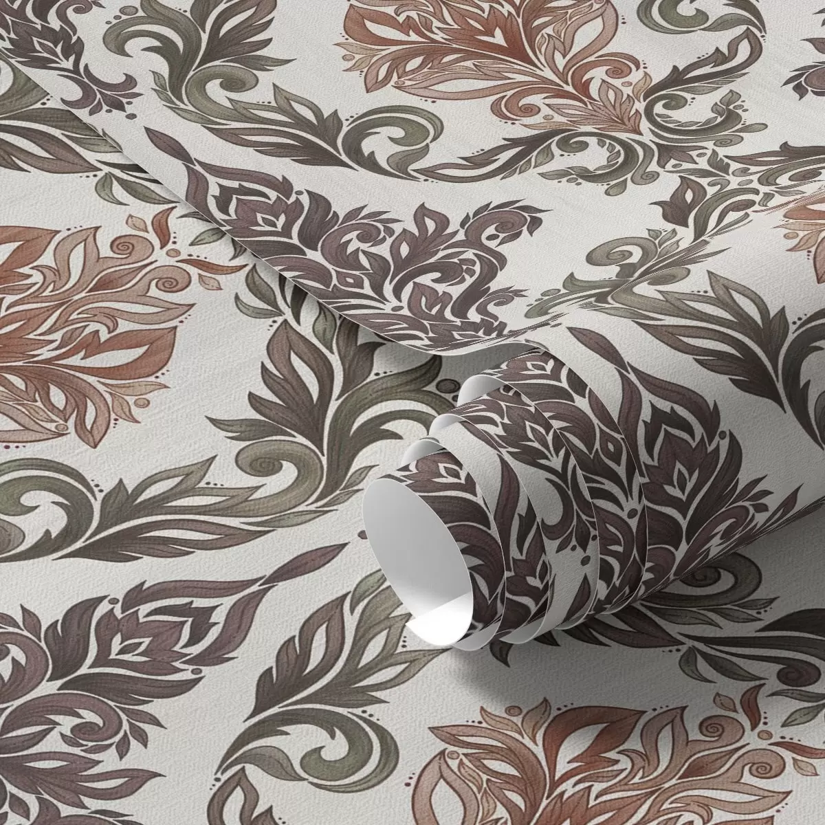 Papel tapiz Damasco con detalles en marrón cobrizo sobre fondo claro. Nr. a00828v4