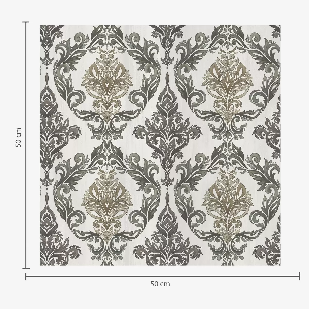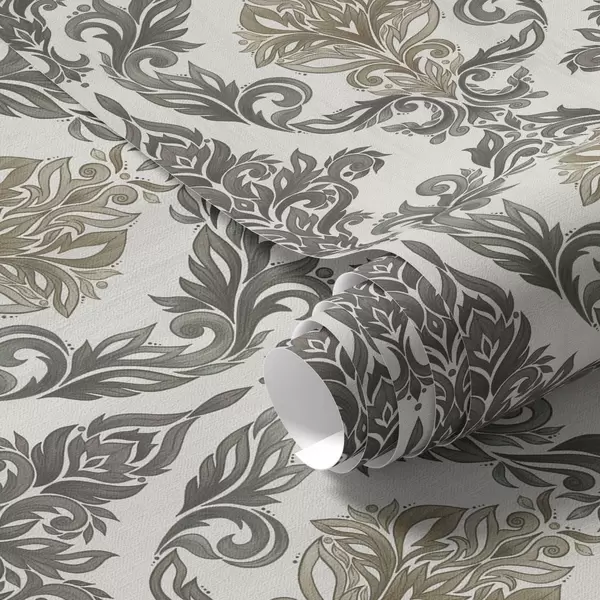 Papel tapiz Damasco sobre fondo claro, detalles en bronce oliva. Nr. a00828v6