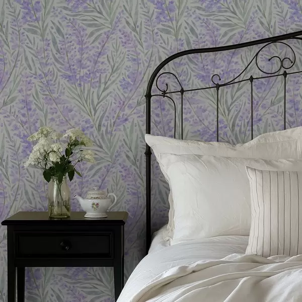 Papel tapiz Ramitas de lavanda en tonos morados sobre fondo claro Nr. a00835