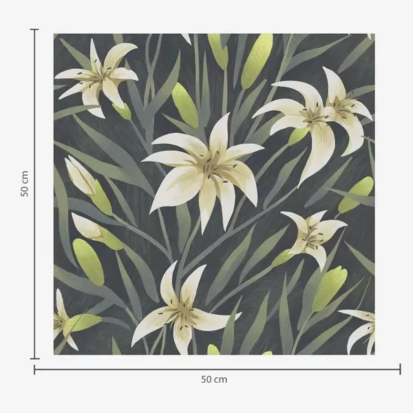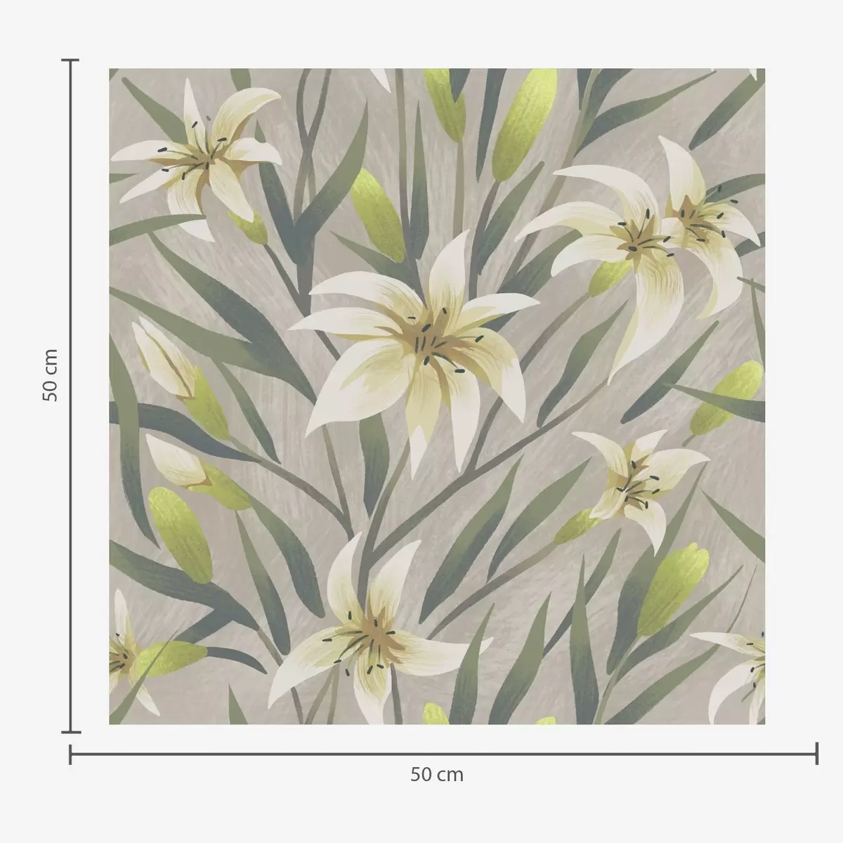 Papel tapiz Lirios crema con hojas sobre fondo gris-beige Nr. a00837
