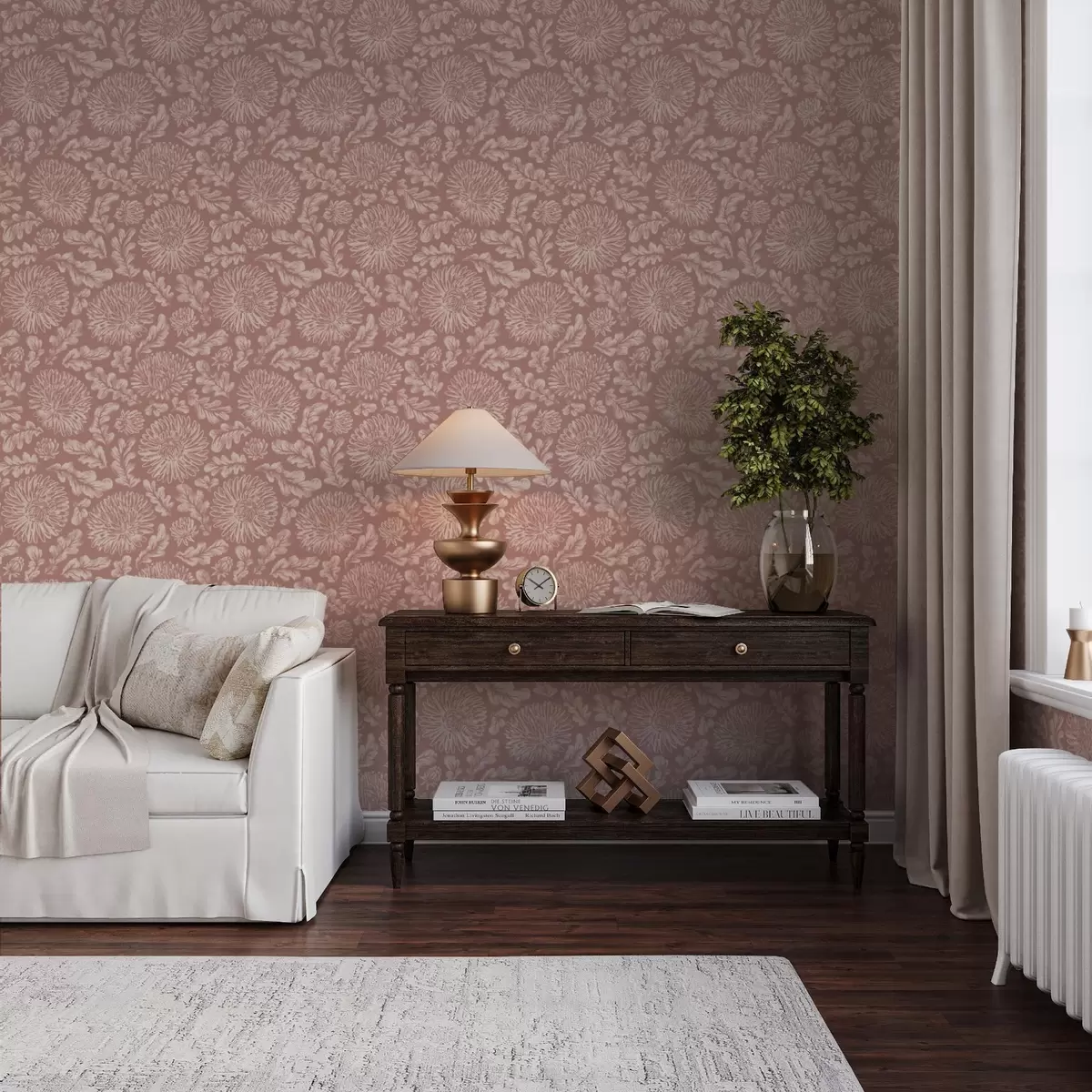 Papel tapiz Crisantemos color crema sobre fondo rosa empolvado Nr. a00840v2
