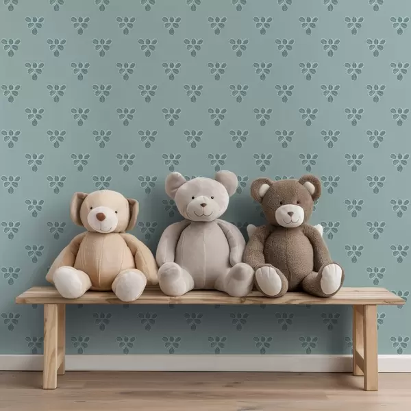 Papel tapiz Pequeña repetición: tríos de hojas en azul frío. Nr. a00848v1
