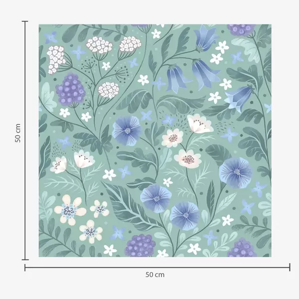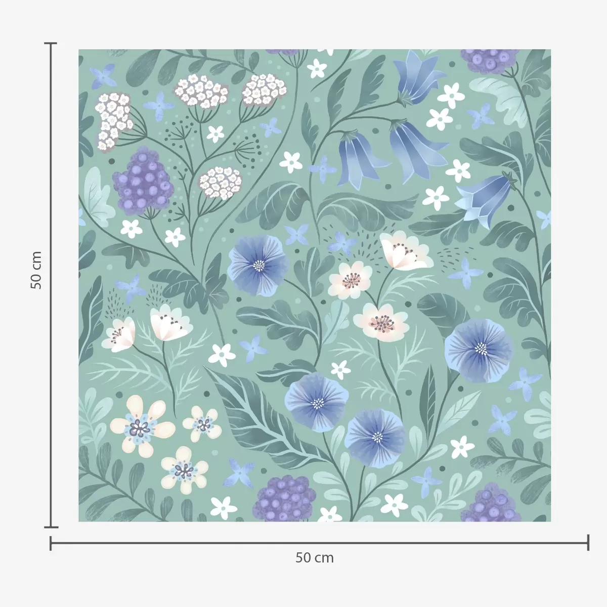 Papel tapiz Flores silvestres y bayas sobre un suave fondo menta Nr. a00849