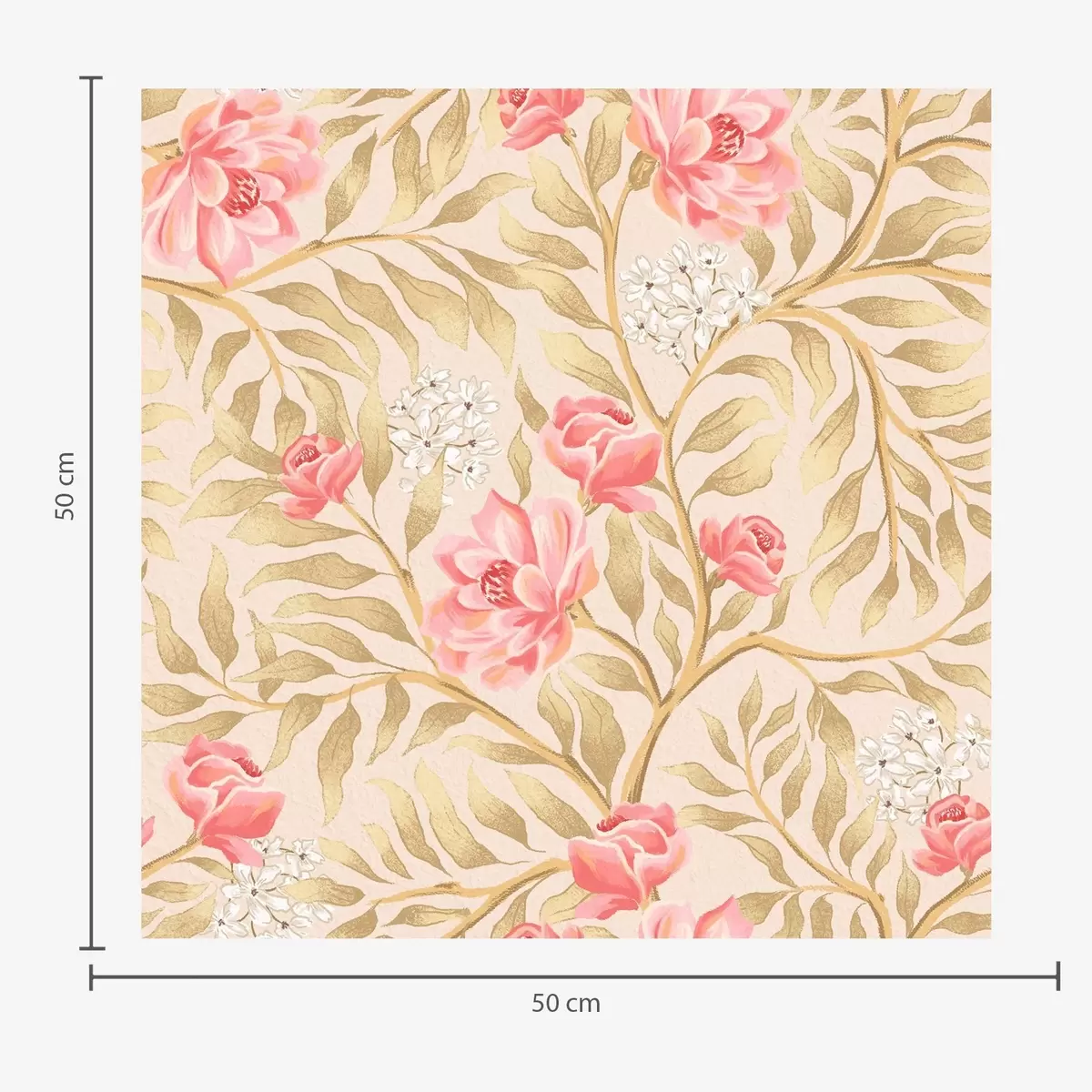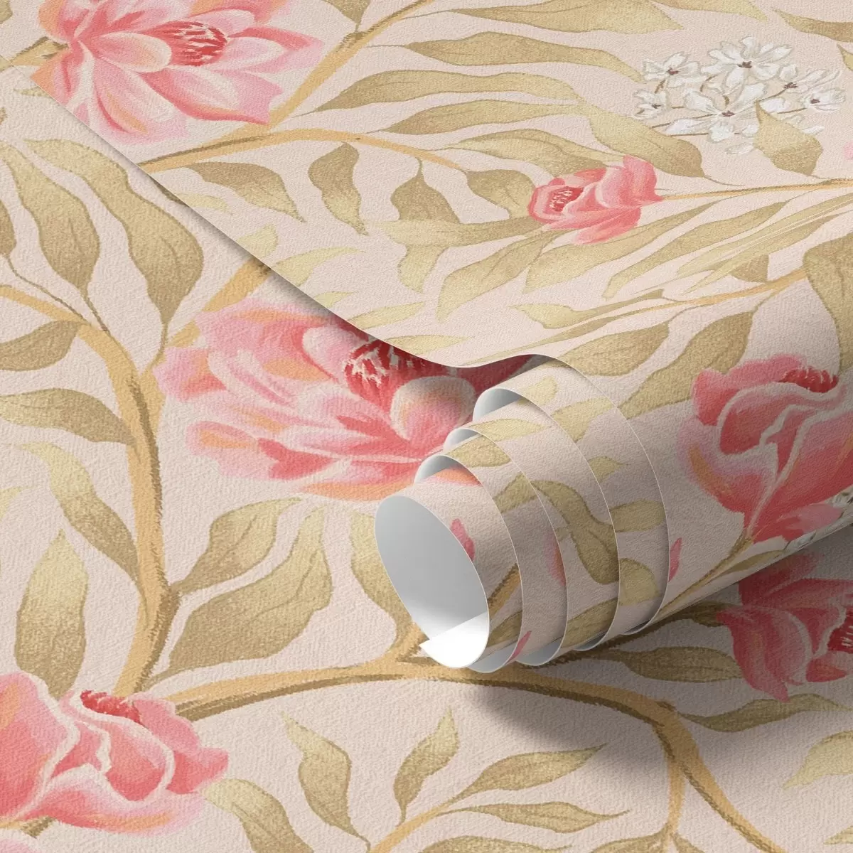 Papel tapiz Flores rosas, flores blancas y follaje en tonos ocres Nr. a00855