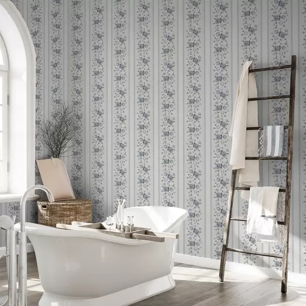 Papel tapiz Rosas azules en bandas verticales sobre fondo claro. Nr. a00860
