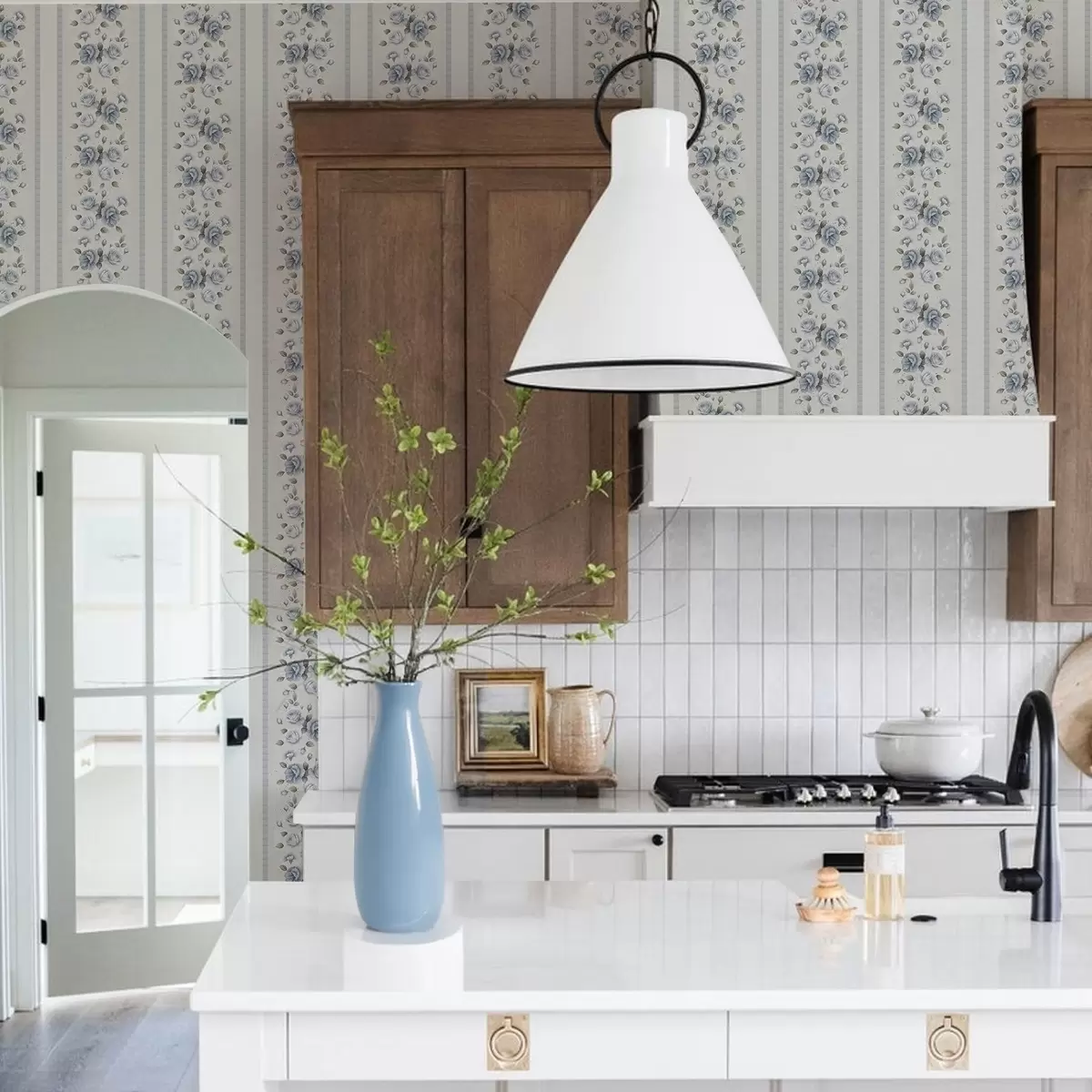 Papel pintado Rosas azules en bandas verticales sobre fondo claro. a00860