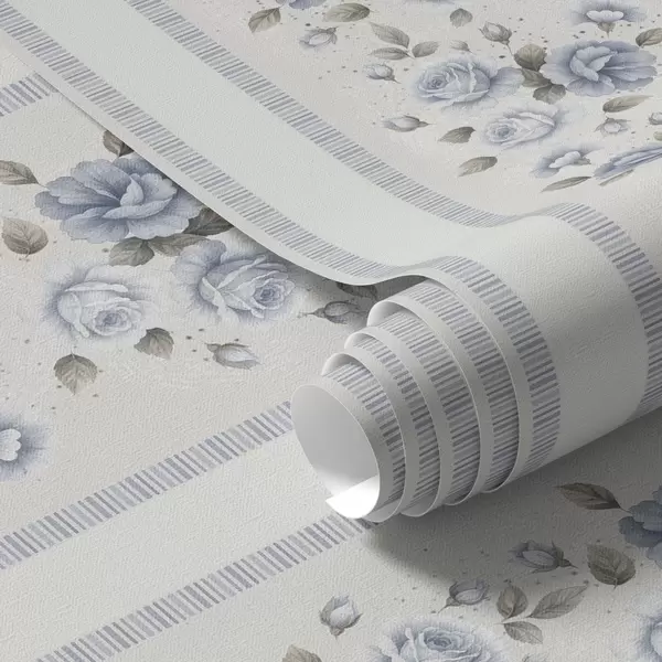 Papel tapiz Rosas azules en bandas verticales sobre fondo claro. Nr. a00860