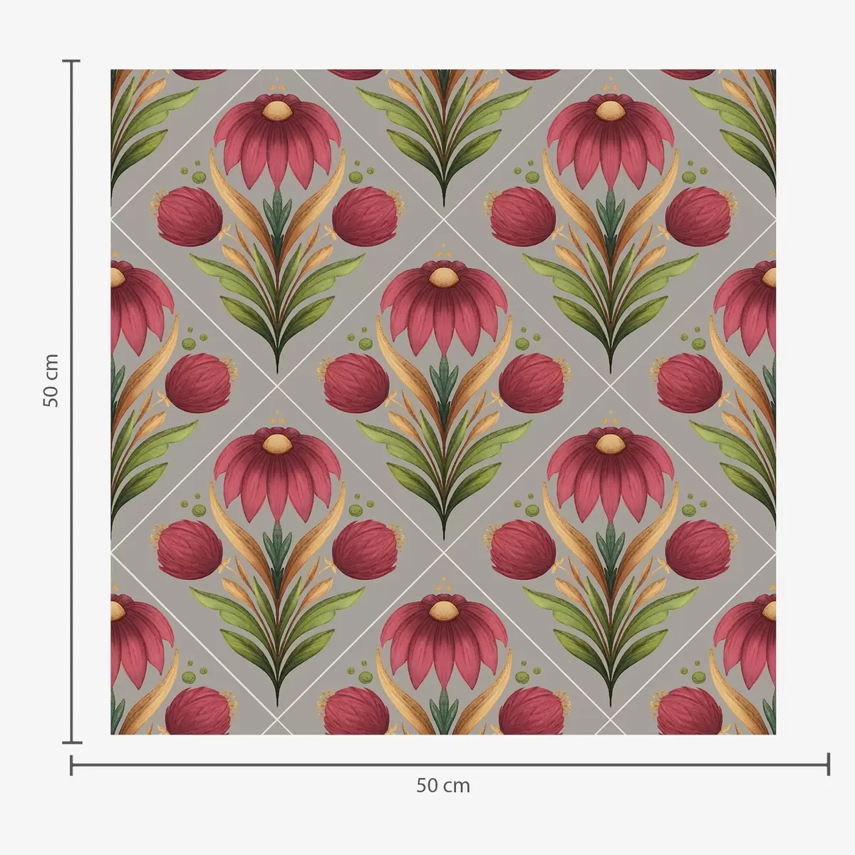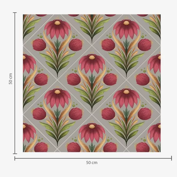 Papel tapiz Adorno floral simétrico sobre fondo gris con diagonales Nr. a00869