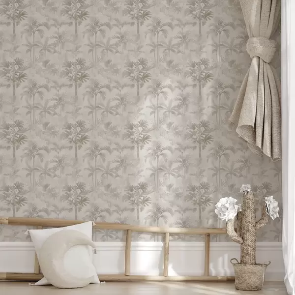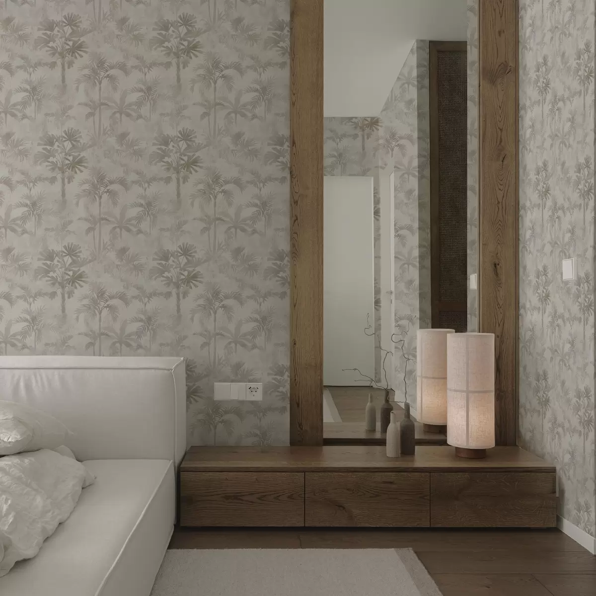 Papel tapiz Palmeral brumoso en cálidos tonos beige Nr. a00881