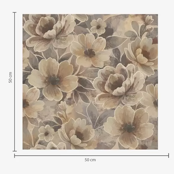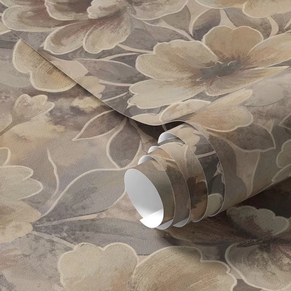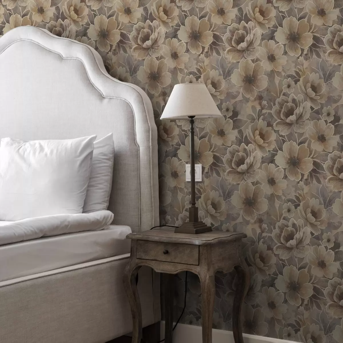 Papel tapiz Flores pintadas en color beige sobre un fondo abstracto ahumado. Nr. a00884