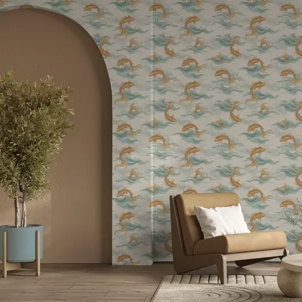 Papel tapiz Peces koi ámbar nadando entre suaves olas turquesas Nr. a00894