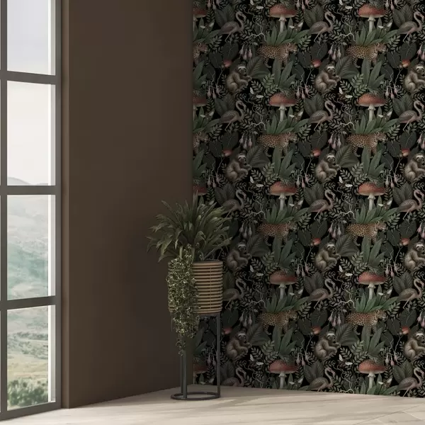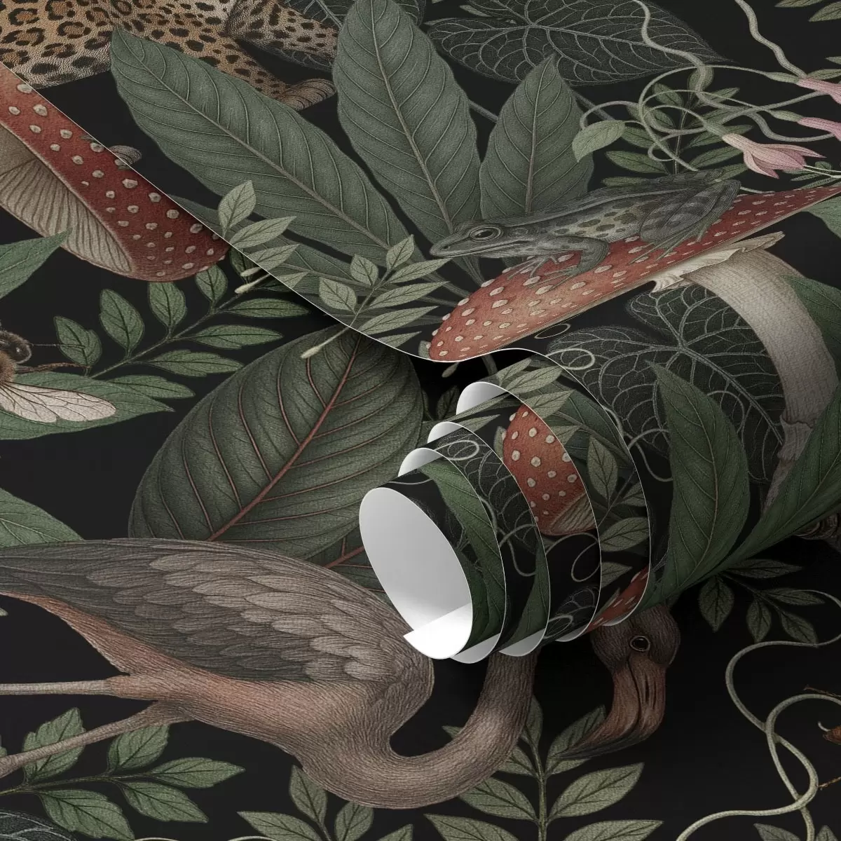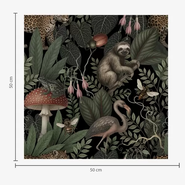 Papel tapiz Habitantes nocturnos de la selva en una exuberante vegetación llena de detalles. Nr. a00896