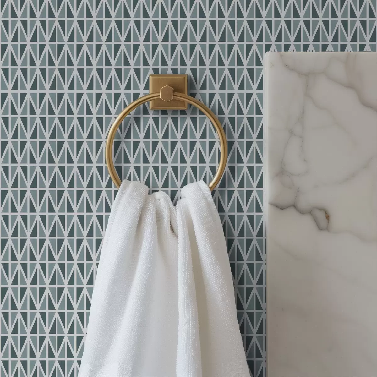 Papel tapiz Finale red de diamantes blancos sobre verde azulado apagado Nr. a00903